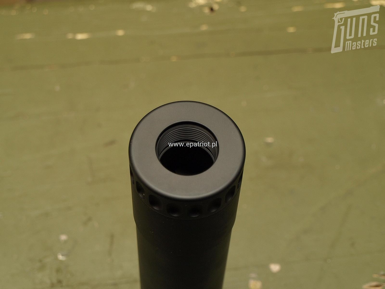 B&T Monoblock kal. do 9,5mm + Adapter M15x1 - urządzenie wylotowe Monoblock jest przeznaczone dla myśliwych lub strzelców precyzyjnych na duże odległości. Jego unikalna konstrukcja jest nieco cięższa i dłuższa od tłumika myśliwskiego StarLite. Zamiast tradycyjnych komór tłumiacych, Monoblock jest wyprodukowany z jednego kawałka obrobionego stopu. Ta metoda zapewnia najwyższy możliwy poziom redukcji hałasu, błysku i odrzutu dla strzelca korzystającego z karabinów kalibru magnum. Podobnie jak tłumiki StarLite, Monoblock został zaprojektowany tak, aby akceptował rózne adaptery gwintu karabinu, dzięki czemu użytkownik może korzystać z tego samego tłumika na różnych sztukach broni z różnymi gwintami. Dzieki temu jest jednym z najbardziej wszechstronnych urządzeń wylotowych na rynku.