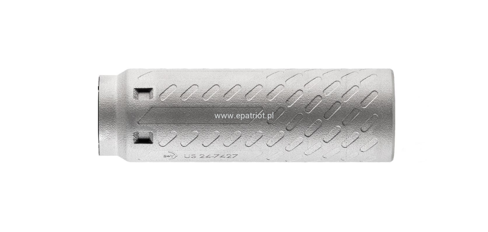 B&T Print-X RBS Compact TITAN kal. 308 Win - hybrydowe urządzenie wylotowe RBS (Reduced Backpressure System) w wersji Compact, przeznaczone do broni kalibru .308 Win, który został wykonany techniką laserowego łączenia warstw przy użyciu Tytanu. Dzięki czemu tłumik jest bezspawowy, co zmniejsza wagę oraz punkty awarii, a zwiększa integralność strukturalną. To również optymalne rozwiązanie do redukcji dźwięku oraz płomienia wylotowego, który przetrwa intensywny trening strzelecki czy harmonogram strzelań. Urządzenia RBS oferuja znaczna redukcję ciśnienia wstecznego gazów prochowych, przy nieznacznym wzroście prędkości zamka (o 1,9%), co prowadzi do wydłużenia żywotności części, oraz lepszego zdrowia strzelca. Ten hybrydowy tłumik nadaje się do zastosowania w karabinkach o krótkiej lub średniej długości lufy.