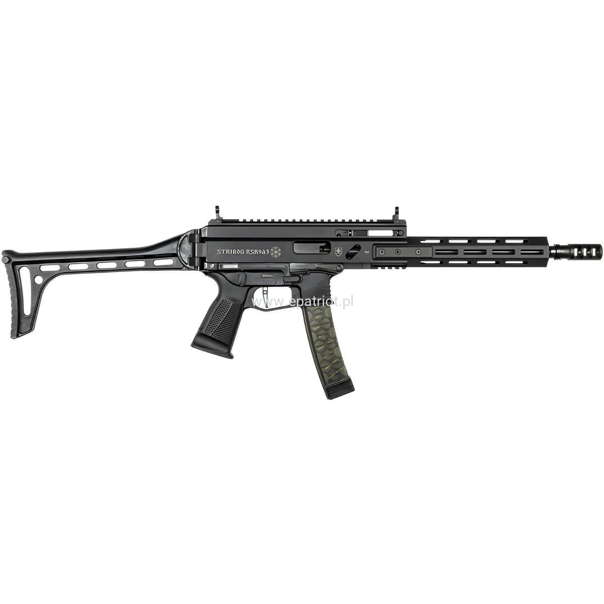 Grand Power Stribog RSR9A3 13,5'' kal. 9x19 - Stribog jest karabinkiem przeznaczony do strzelań dynamicznych i sportowych w formule IPSC. Komora zamkowa wykonana jest z aluminium i wyposażona w szyny Picatinny. Broń wyposażono w unoszone przyrządy celownicze (muszka/szczerbina, muszka/przeziernik). Wszystkie manipulatory tj. bezpiecznik, przycisk zwalniający magazynek oraz dźwignia zwalniania zamka umieszczone są po obu stronach komory dzięki czemu nadaje sie dla strzelca lewo i prawo ręcznego.
