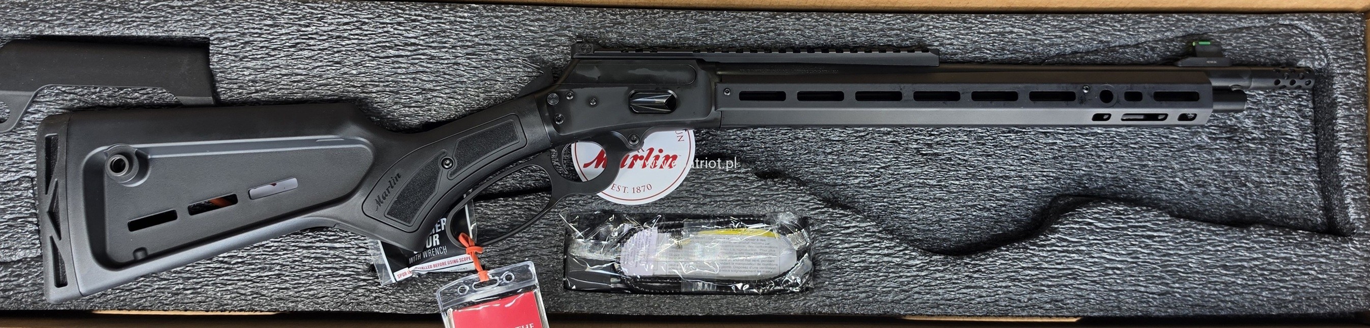 Karabin Marlin 1984 Dark Series 70903 kal. .44 Magnum - zasilany amunicją .44 Magnum. Karabin posiada mocną, wzmacnianą nylonem polimerową kolbę ze slotami M-Lok, porty QD pod mocowanie pasa, oraz bakę policzkową umożliwiającą optymalne ułożenie głowy w przypadku montażu optyki. Kolba posiada również Comfort Pada który znacząco pochłania odczuwalny odrzut.