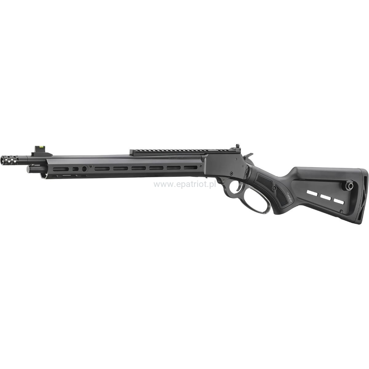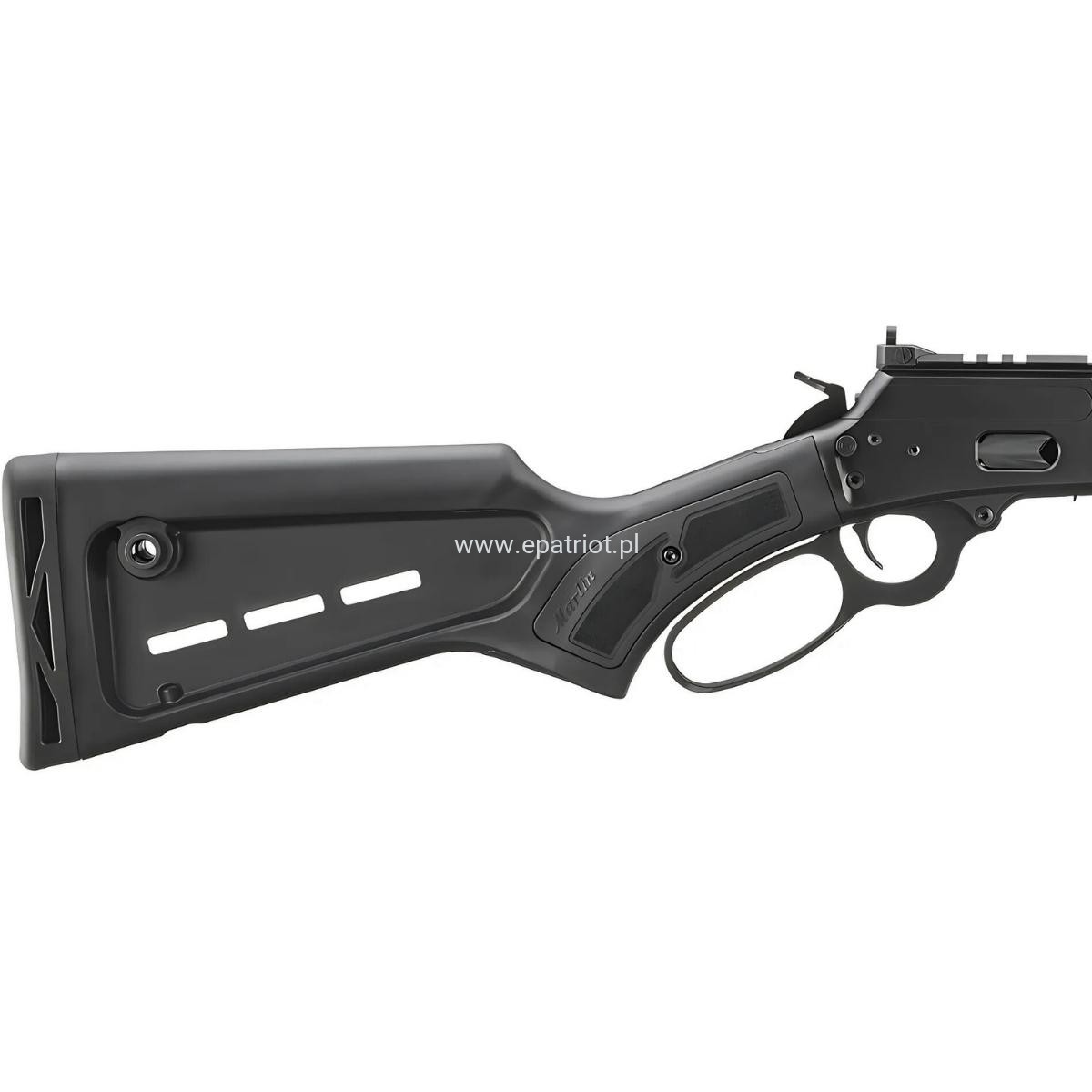 Karabin Marlin 1984 Dark Series 70904 kal. .357 Magnum - zasilany amunicją .357 Magnum karabin posiada mocną, wzmacnianą nylonem polimerową kolbę ze slotami M-Lok, porty QD pod mocowanie pasa, oraz bakę policzkową umożliwiającą optymalne ułożenie głowy w przypadku montażu optyki. Kolba posiada również Comfort Pada który znacząco pochłania odczuwalny odrzut.