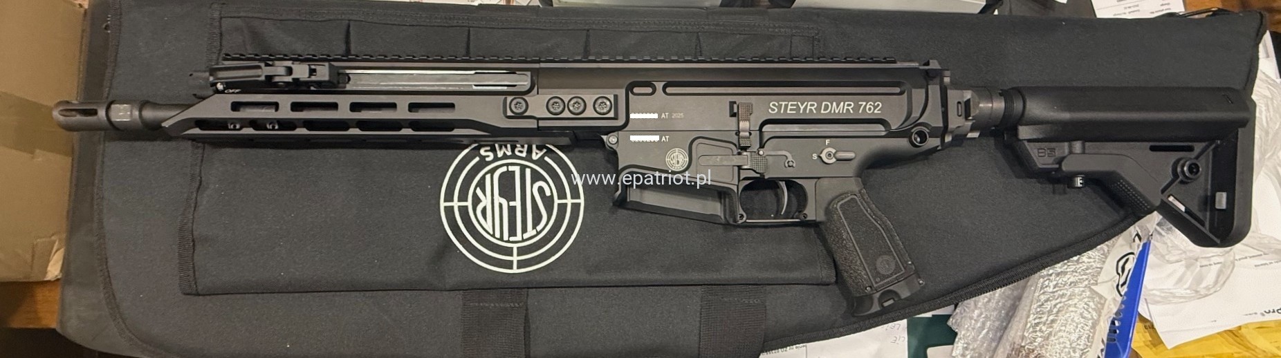 Karabin Steyr DMR 762 kal. 308Win to nowy model precyzyjnej broni opartej na systemie tłokowym która gwarantuje skupienie poniżej 1 MOA. Posiada metalową konstrukcję, kolbę wysuwaną i składaną, obustronne manipulatory, szynę montażową, łoże w systemie M-LOK oraz wymienny chwyt.