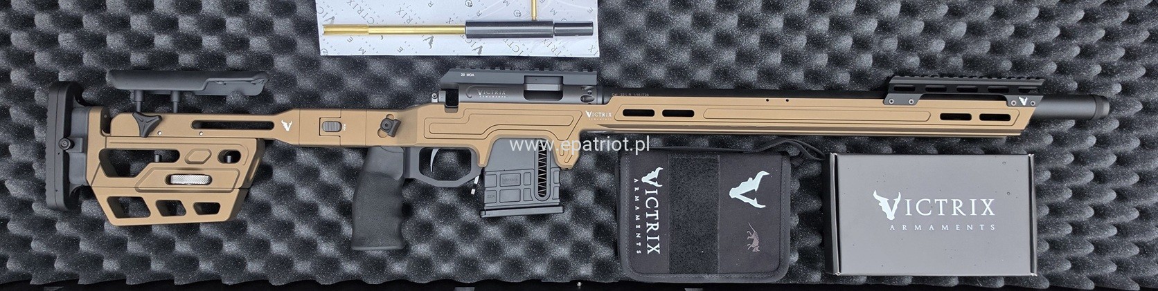 Karabin powtarzalny VICTRIX ORB SB Burnt Bronze to model, który redefiniuje pojęcie nowoczesnego karabinu powtarzalnego. Zaprojektowany przez inżynierów Victrix Armaments z myślą o strzelectwie długodystansowym i zawodach typu PRS, łączy w sobie bezkompromisową sztywność konstrukcji z lekkością formy. Wykończenie w głębokim, metalicznym odcieniu Burnt Bronze nadaje mu unikalny, prestiżowy charakter, wyróżniając go na każdym stanowisku strzeleckim.