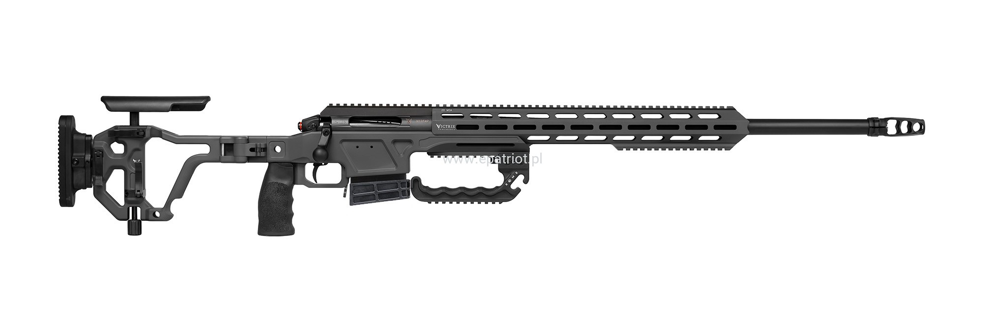 Karabin precyzyjny Victrix GLADIO V to wyjątkowo celny karabin i wytrzymały snajperski. Posiada bardzo precyzyjną lufę, która osiąga skupienie poniżej 1 moa nawet przy dużej ilości oddanych strzałów. Jak podaje producent nawet po oddaniu 10000 strzałów nie utraci swojej celności. W zestawie wygodny kufer do przenoszenia broni wraz z optyką, magazynek oraz zestaw startowy z gadżetami. Dodatkowo wyróżnia się wygodną, regulowaną w każdej płaszczyźnie składaną kolbą, chwytem ułatwiającym przenoszenie oraz kompensatorem.