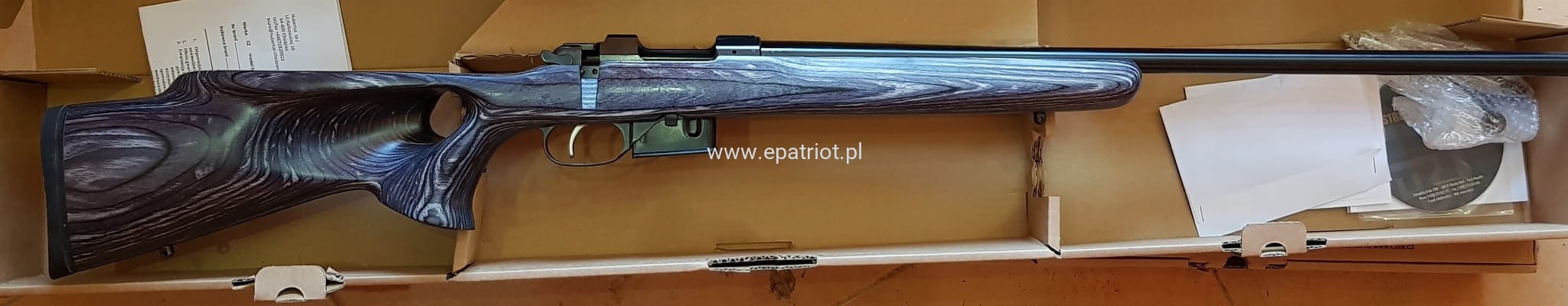 Karabinek CZ 527 Thumbhole Varmint kal. 223Rem przeznaczony jest do precyzyjnych strzelań z celownikiem optycznym na średnie i dalekie odległości. Osada wykonana jest z bardzo wysokiej jakości szarego laminatu z otworem na kciuk (thumbhole) w połączeniu z ryflowaną, varmintowską lufą nadaje karabinkowi rasowego wyglądu. Brak otwartych przyrządów celowniczych. Magazynek 5-strzałowy wyjmowany.