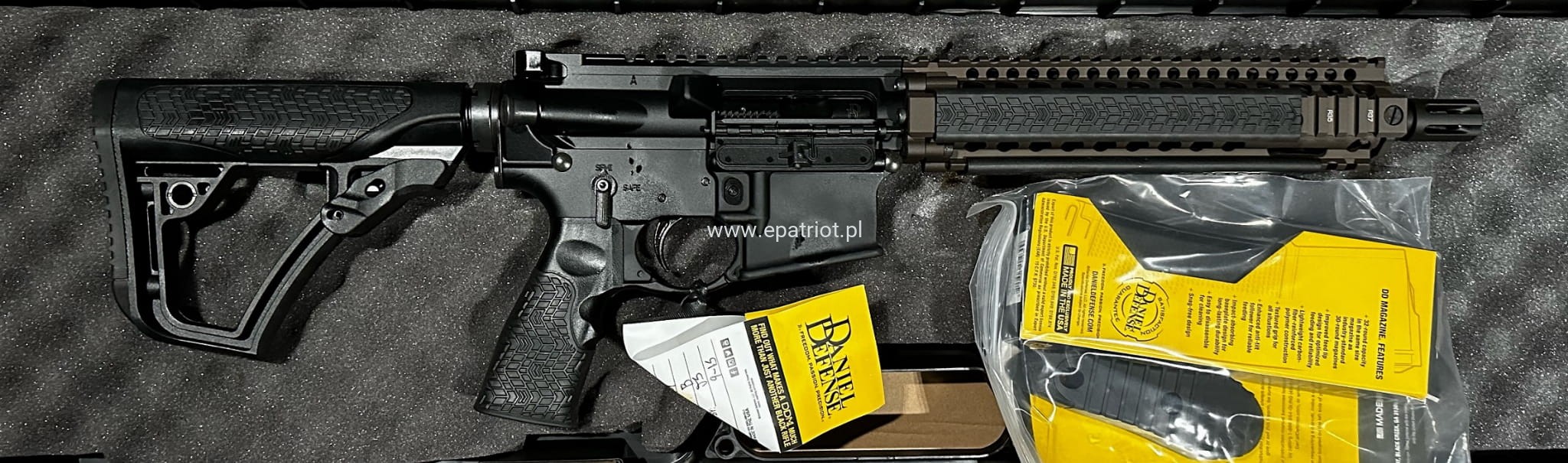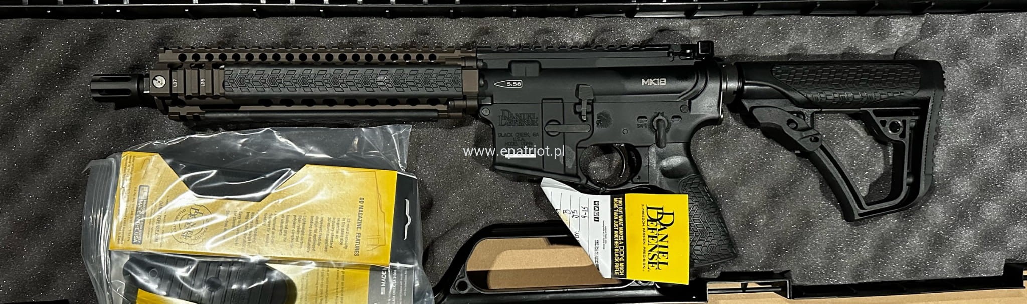 Karabinek Daniel Defense MK18 kal. 5,56NATO/223REM wykorzystywany przez elitarne siły specjalne wojsk USA to flagowy model doskonale znanej firmy cechujący się wyjątkowa celnością i trwałością. Posiada łoże w najpopularniejszym systemie montażowym z szynami picantinny który zapewnia kompatybilność z największą ilością akcesoriów dostępnych na rynku. Chwyt oraz kolba regulowana w sześciu pozycjach zaprojektowana przez Daniel Defense. Wbudowany system montażowy QD do zaczepienia pasa nośnego. Najważniejszą cechą jest tez standard MIL-SPEC który zapewnia kompatybilność z konstrukcjami oraz akcesoriami.