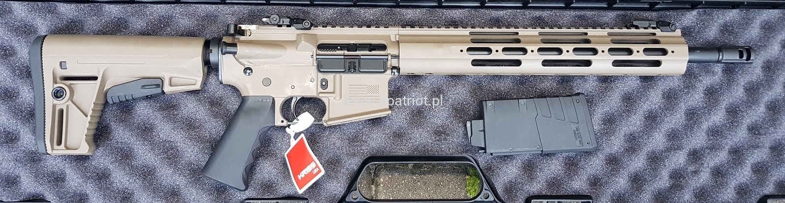 Karabinek KRISS Defiance DMK22C FDE kal. 22LR wyprodukowany na bazie konstrukcji AR15. Komora zamkowa i spustowa wykonana z aluminium. Lufa o długości 16" oraz łoże 13". Karabinek jest wyposażony w chwyt pistoletowy i kolbę KRISS DEFIANCE. Posiada montaże QD do zawieszenia oraz przyrządy celownicze muszkę i szczerbinkę. W zestawie znajduje się jeden magazynek.