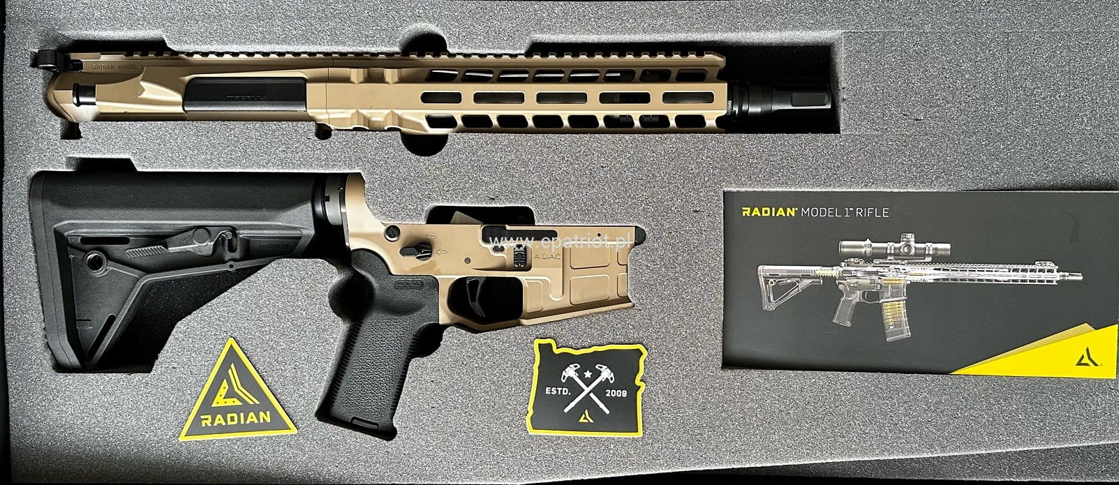 Karabinek Radian Model 1 lufa 10,5" każdy egzemplarz broni składany jest ręcznie w USA. Posiada precyzyjna lufę która osiąga skupienie poniżej 1 MOA. Lufa wykonana ze stali nierdzewnej o skoku 1:8" z gwintem 1/2×28 z tłumikiem płomienia. Dodatkowo wyposażony a łoże M-LOK, obustronne manipulatory, spust VERTEX oraz gniazda QD umożliwiające montaż zawieszenia.