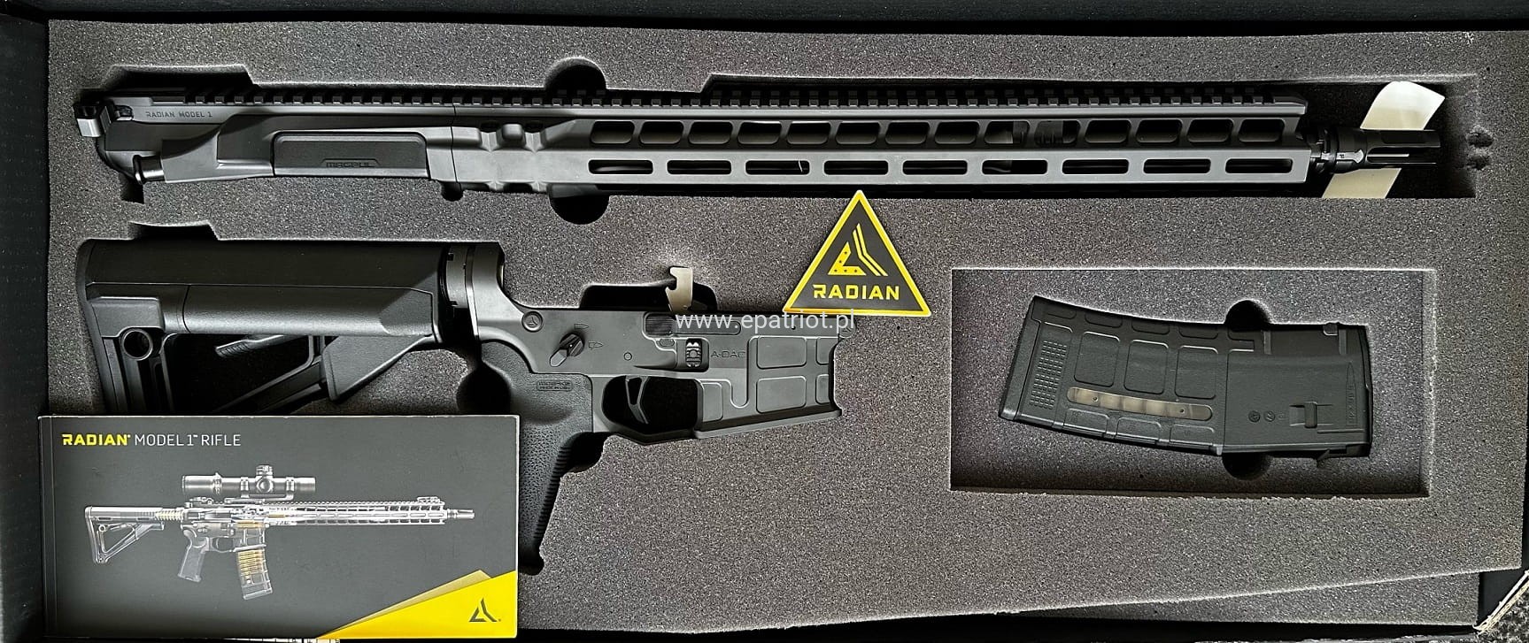 Karabinek Radian Model 1 lufa 17,5" kal. 223Rem/5,56Nato to model AR-15 wyposażony w większości w akcesoria producenta. Każdy egzemplarz broni składany jest ręcznie w USA. Precyzyjna lufę gwarantująca skupienie poniżej 1 MOA wykonano ze stali nierdzewnej o skoku 1:8" z gwintem 1/2×28 na końcu lufy wyposażoną w tłumik płomienia. Posiada aluminiowe łoże w M-LOK, dopychacz, obustronne manipulatory, spust VERTEX oraz gniazda QD do mocowania pasa nośnego.