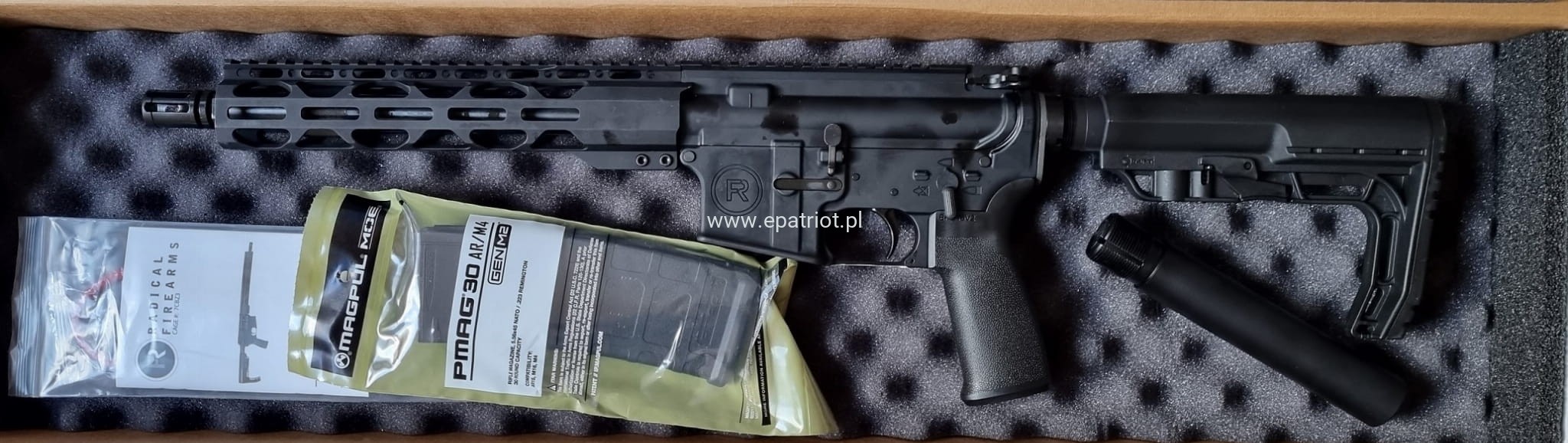 Karabinek Radical RF-15 lufa 10,5" kal. 223Rem to wyprodukowana w Teksasie cywilna wersja karabinka produkowanego na potrzeby amerykańskich służb porządkowych.To klasyczny przedstawiciel rodziny AR-15/M16 skonstruowany w systemie gazowym, z bezpośrednim działaniem gazów prochowych na suwadło. Posiada ergonomiczny chwyt pistoletowy, ulepszoną dźwignią zrzutu zamka oraz przycisk zwalniania magazynka.