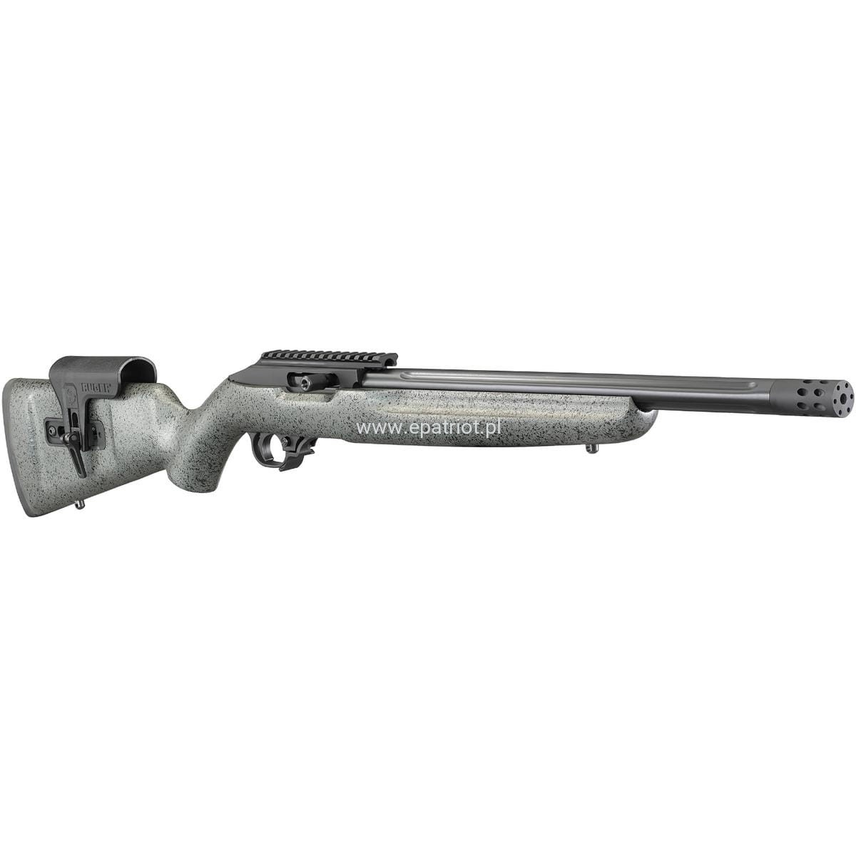 - Kuta na zimno matchowa lufa jest karbowana w celu zmniejszenia masy i szybkiego odprowadzania ciepła. Na gwincie 1/2"-28 zamontowano fabryczny hamulec wylotowy Ruger.