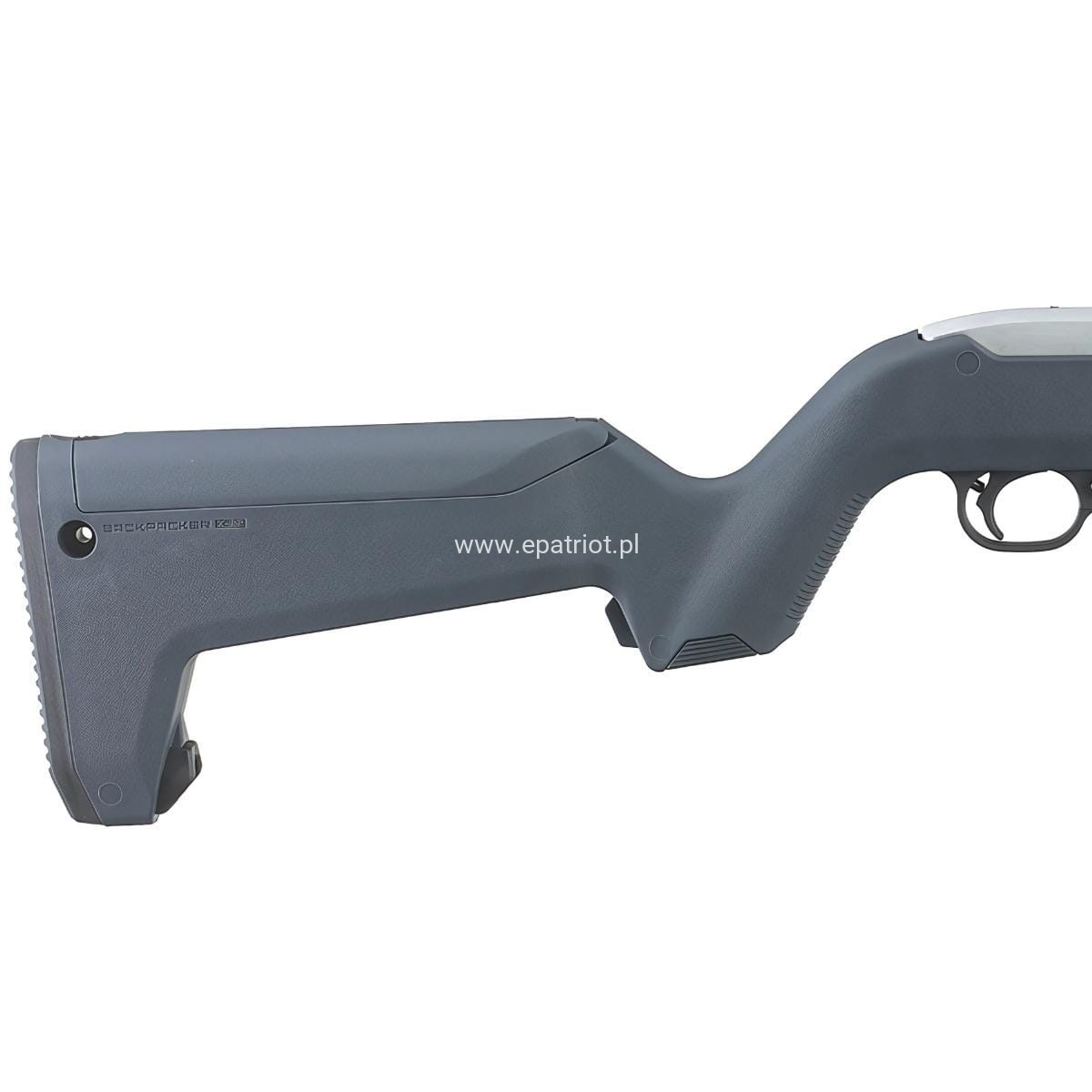 - Kolba Magpul® X-22 Backpacker z ergonomicznym chwytem i możliwością zamontowania gniazd QD. Zintegrowany w kolbie schowek mieści zapasowy magazynek, antypoślizgową gumową stopkę MOE SL® oraz unikalny interfejs blokujący mocowanie lufy do kolby podczas transportu.