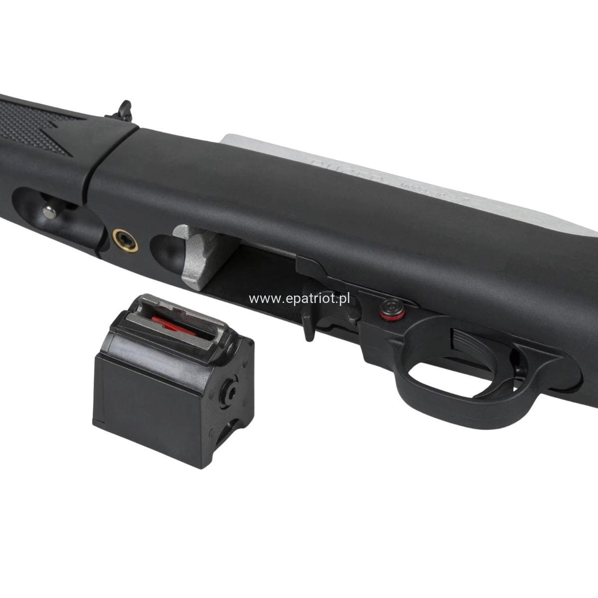 - Wydłużony zwalniacz magazynka zapewnia szybką i płynną wymianę
