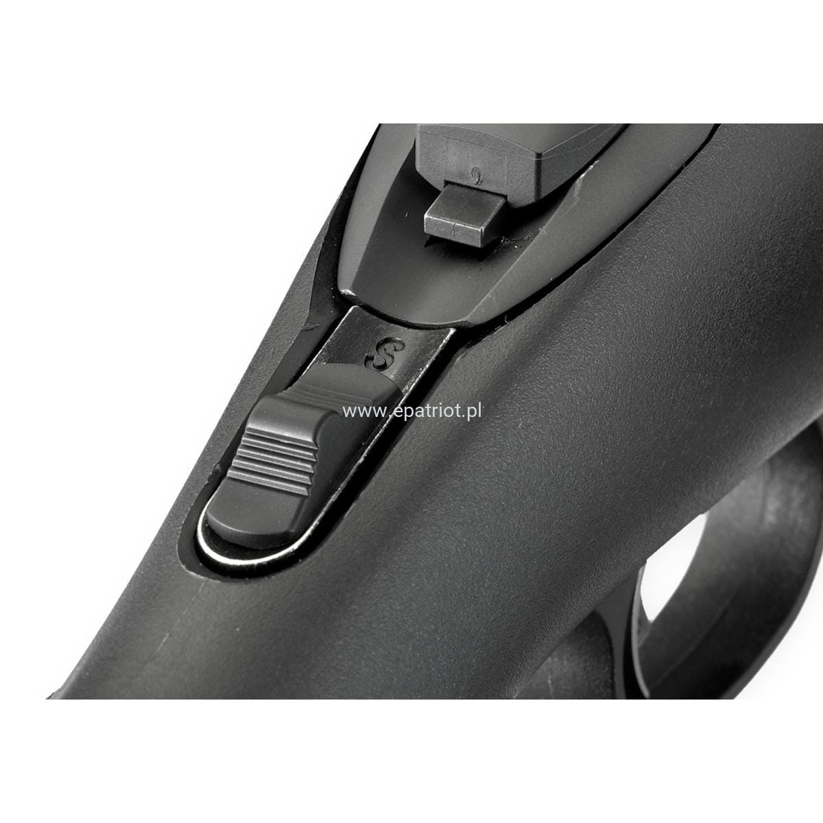 - Widoczny i łatwy w obsłudze bezpiecznik zapewniający szybkie zabezpieczenie broni