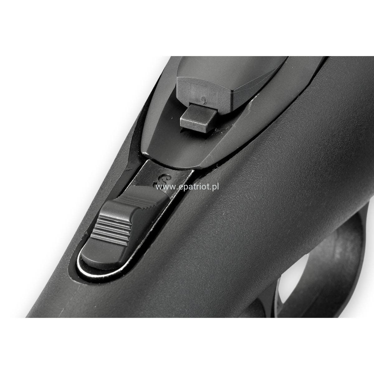 - Widoczny i łatwy w obsłudze bezpiecznik zapewniający szybkie zabezpieczenie broni