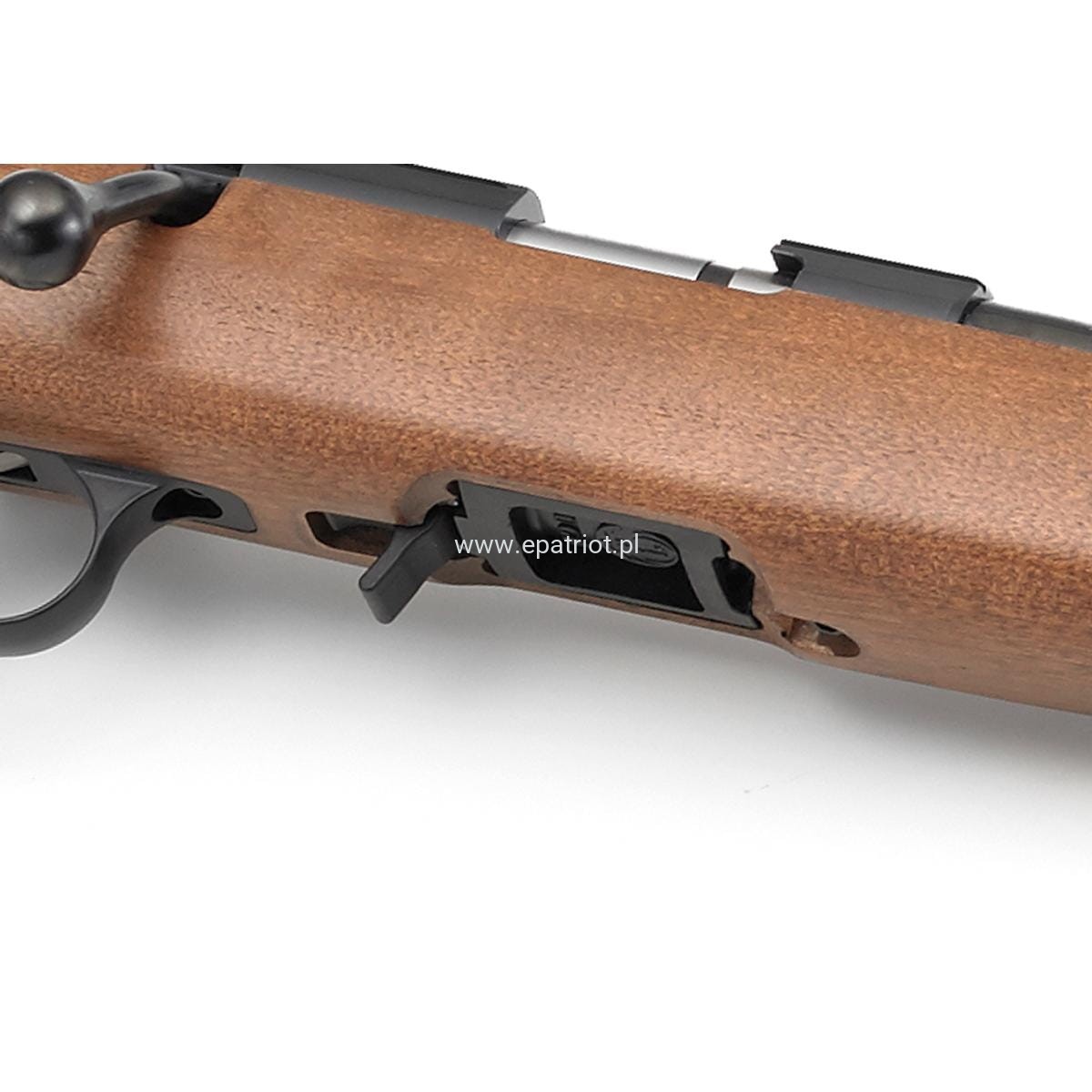 - Widoczny i łatwy w obsłudze bezpiecznik zapewniający szybkie zabezpieczenie broni