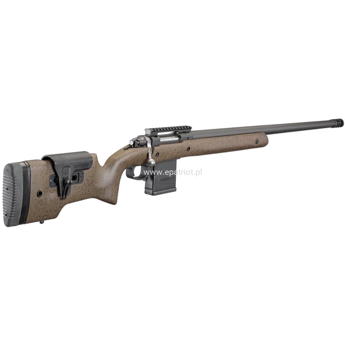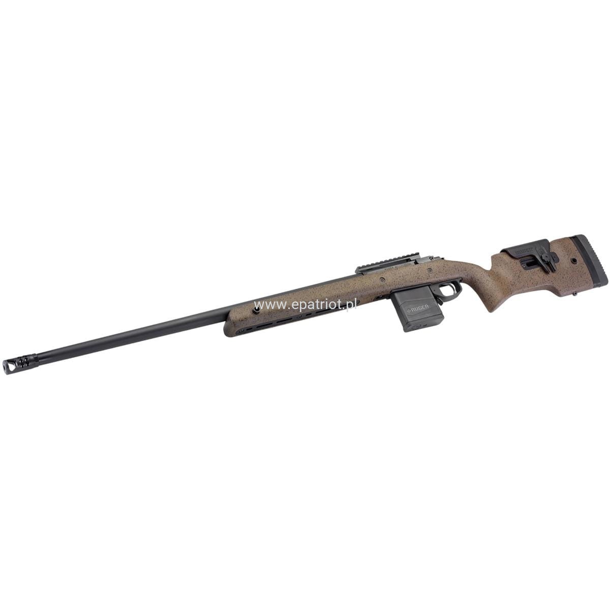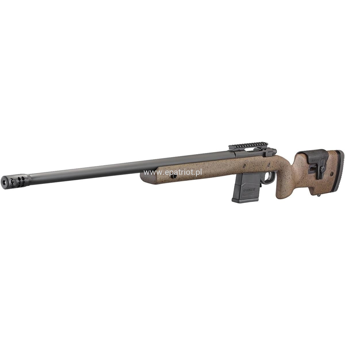 - Hybrydowy hamulec wylotowy Ruger Precision®, który skutecznie zmniejsza odrzut, minimalizując jednocześnie hałas.