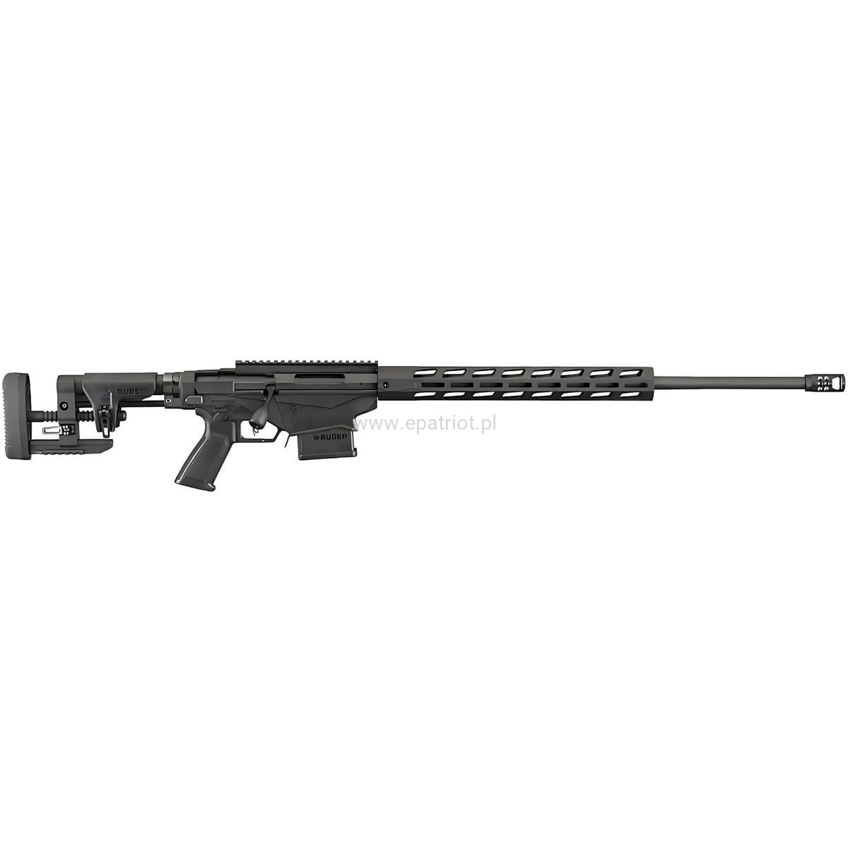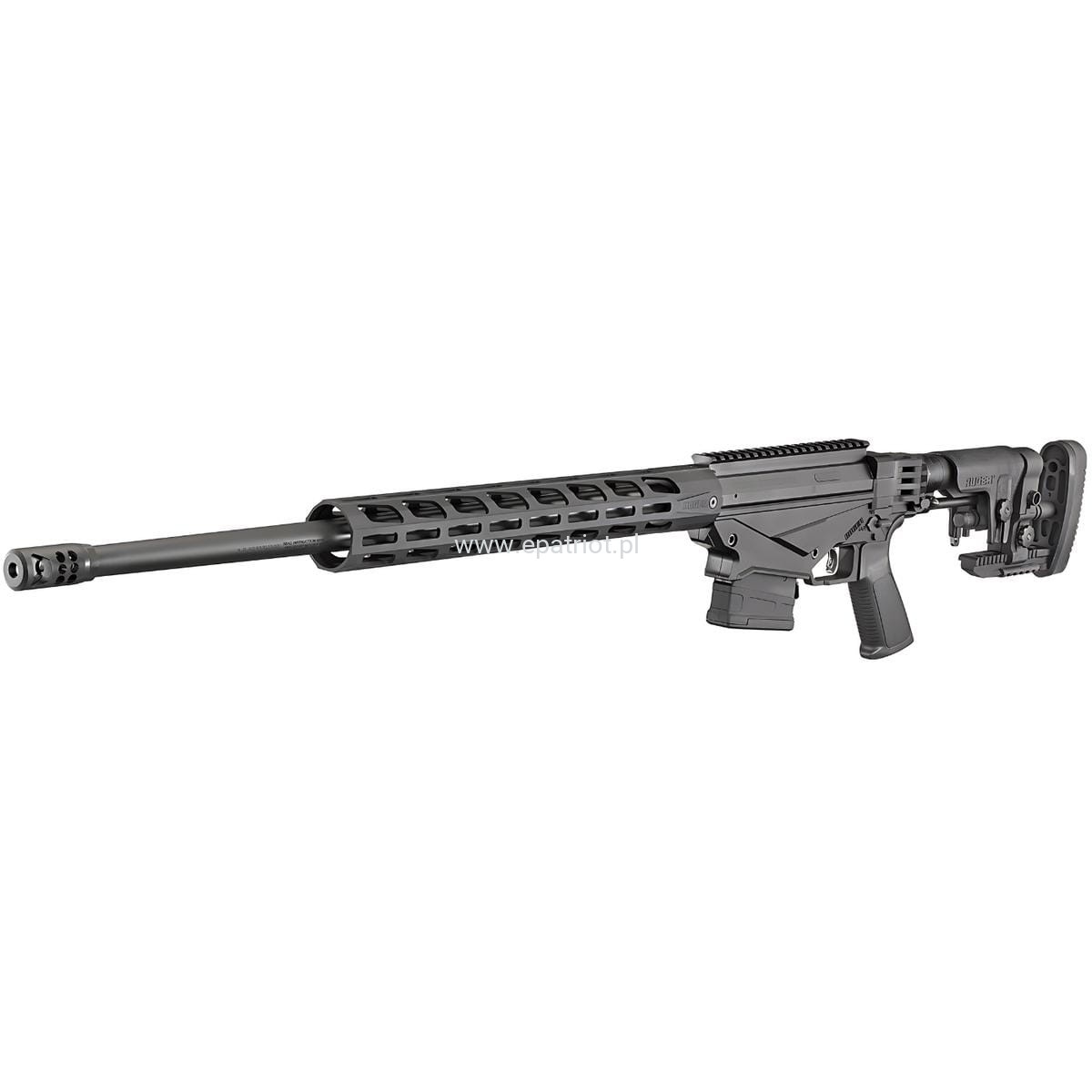 - Lufa kuta na zimno ze stali chromowo-molibdenowej z 5 bruzdami i gwintem 1:8 RH wyposażona w kompensator „Ruger Precision Rifle”, który skutecznie zmniejsza odrzut, jednocześnie minimalizując hałas i podmuch na boki strzelca.