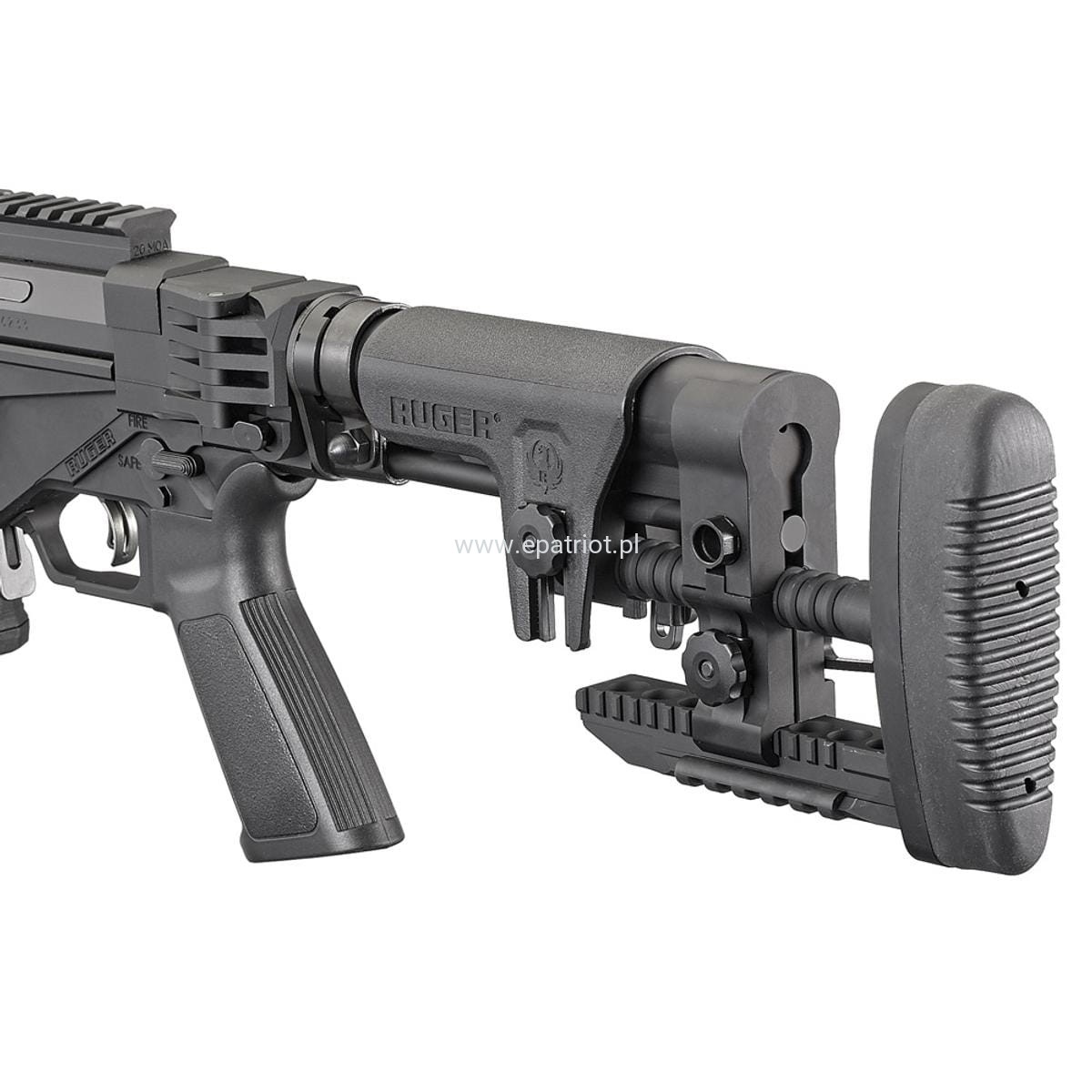 - Kolba Ruger Precision MSR z regulacją baki i kolby w systemie QD ma dolną szynę Picatinny i miękką gumową stopkę. Ze względu na mocowanie na standardowym „Buffer Tube” istnieje możliwość zmiany kolby na jakąkolwiek w systemie Mil-Spec.