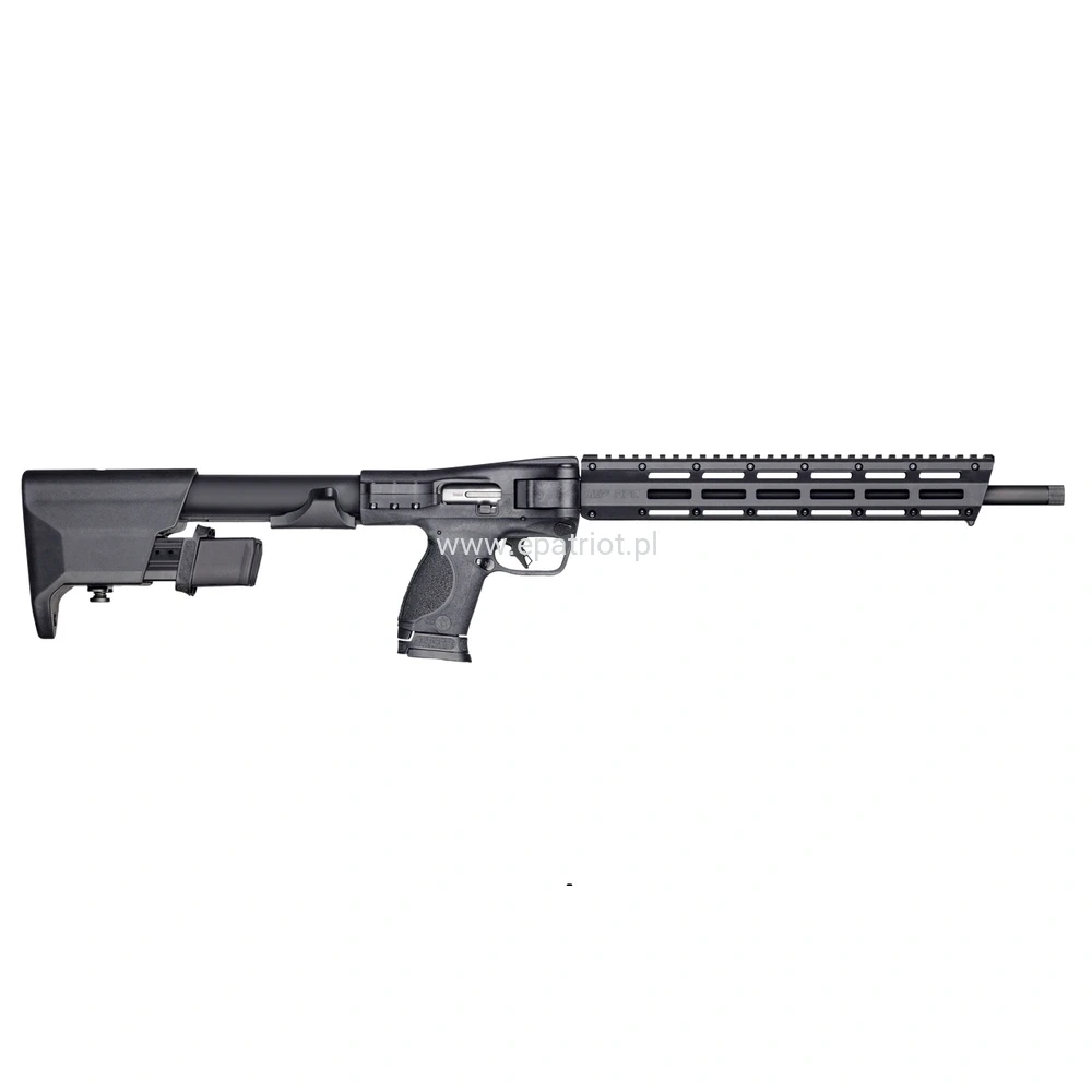 Karabinek S&W FPC 16" kal. 9x19mm to kompaktowa, składana konstrukcja na amunicję pistoletową. Posiada dwa gniazda na zapasowe magazynki, chwyt pistoletowy z wymiennymi czterema okładzinami, łoże M-LOK, szynę montażową oraz przyrządy celownicze. Dodatkowo wyposażony w dwustronny zatrzask magazynka, sportowy spust oraz jeden magazynek 17nb i dwa magazynki 23nb.