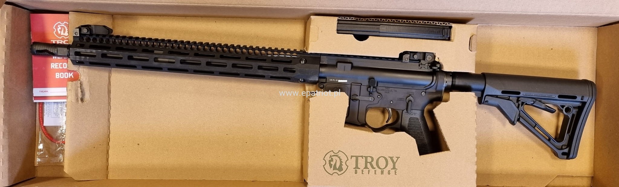 Karabinek TROY M4A4 SPC 16" kal. 5,56 w zestawie składane przyrządy celownicze.