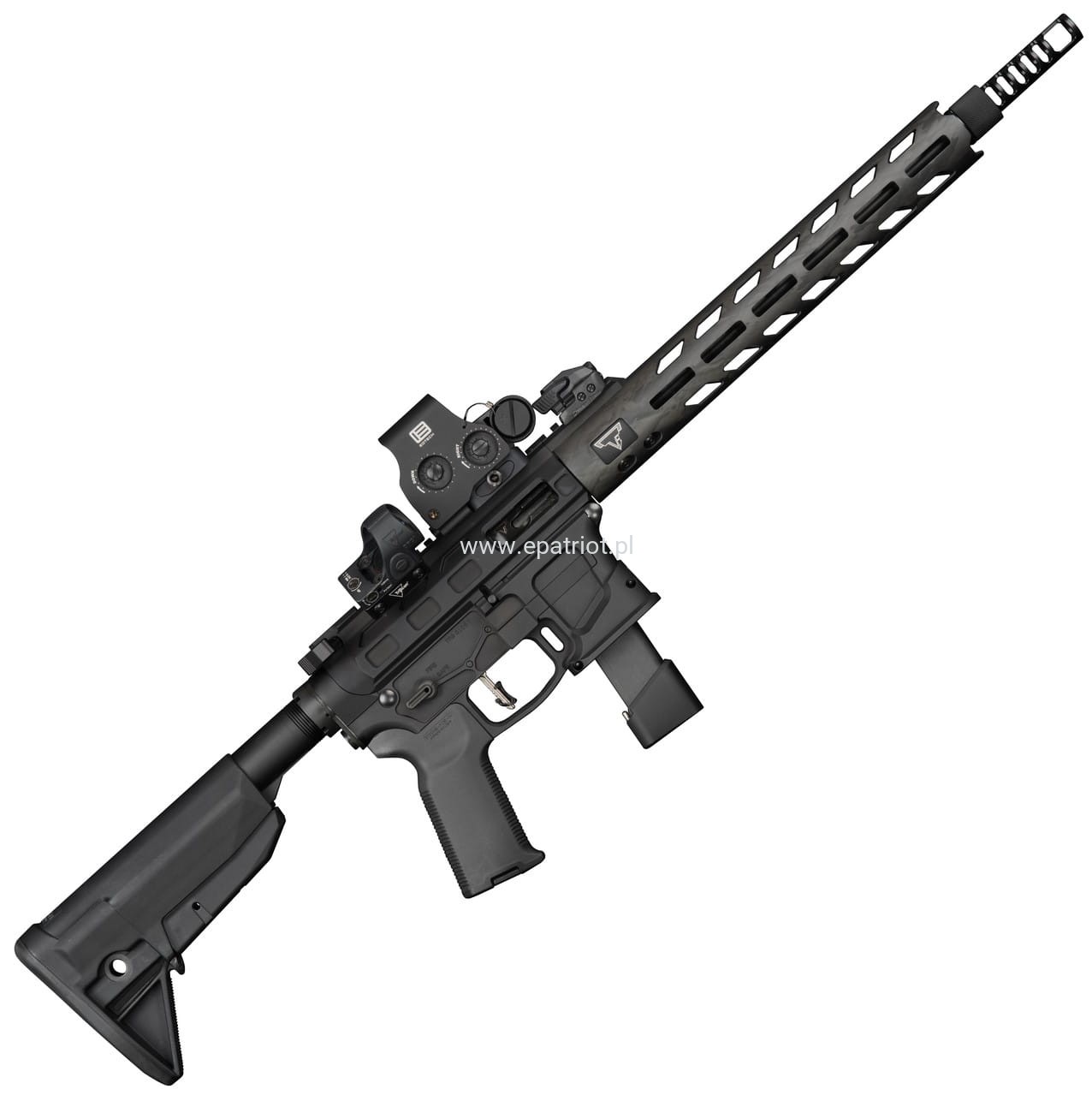 Karabinek Taran Tactical TTI TR-9 PCC kal. 9x19mm to najbardziej niezawodny, szybki i lekki model AR-9 na świecie. Lufa i kompensator wykonanyz jednego kawałka stali 4150 CrMoV co skutkuje wysoką precyzją strzału. Został zaprojektowany na standardowe magazynki Glocka 9mm ze względu na dostępność i niezawodność. Dzięki swojej unikalnej geometrii magazynek umiejscowiony jest bliżej komory niż jakakolwiek inna konstrukcja. Łoże M-LOK wykonane z włókna węglowego firmy Smoke Composites. Posiada obustronne manipulatory oraz spust Hiperfire umożliwiający szybkie i precyzyjne strzelanie. W zestawie znajduje się jeden 17-nabojowy magazynek Glock.