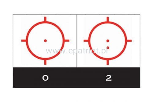 - Rozmiar punktów: kropka 1 MOA, okrąg 68 MOA