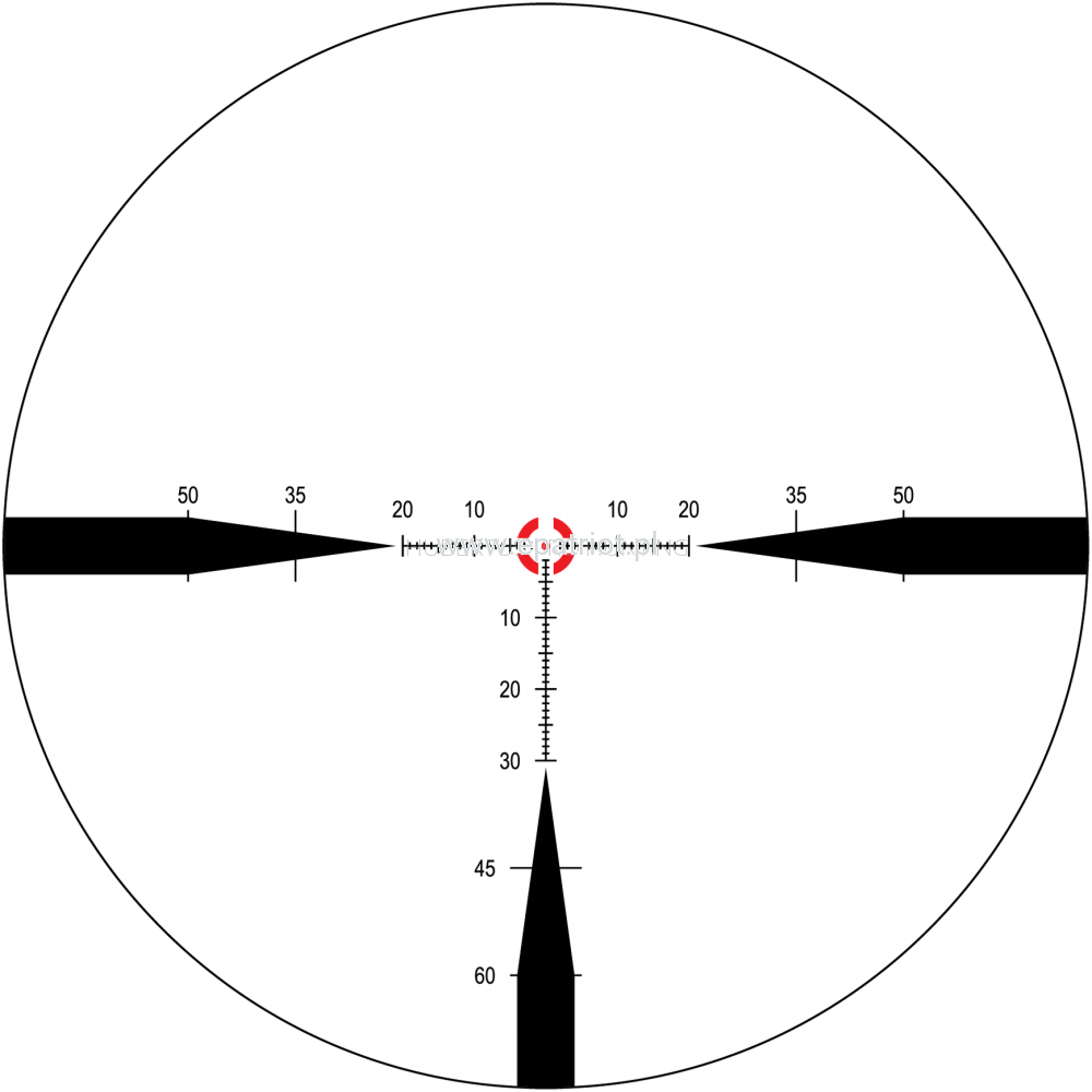 - Krzyż: FC-MOA, w pierwszym planie, podświetlana centralna kropka i kółko z regulacją natężenia, widoczna w świetle dziennym