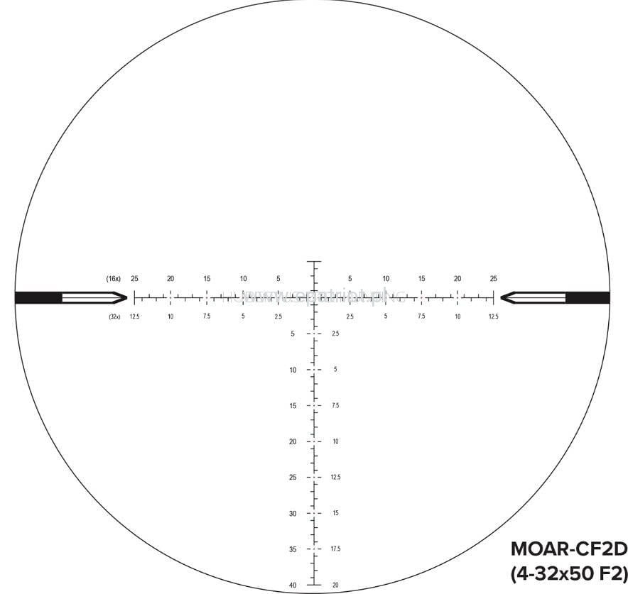 - Krzyż: MOAR-CF2D, w drugim planie, podświetlany system DigiIlum, dwie skale właściwe dla powiększeń 16x i 32x (opis w załączniku)