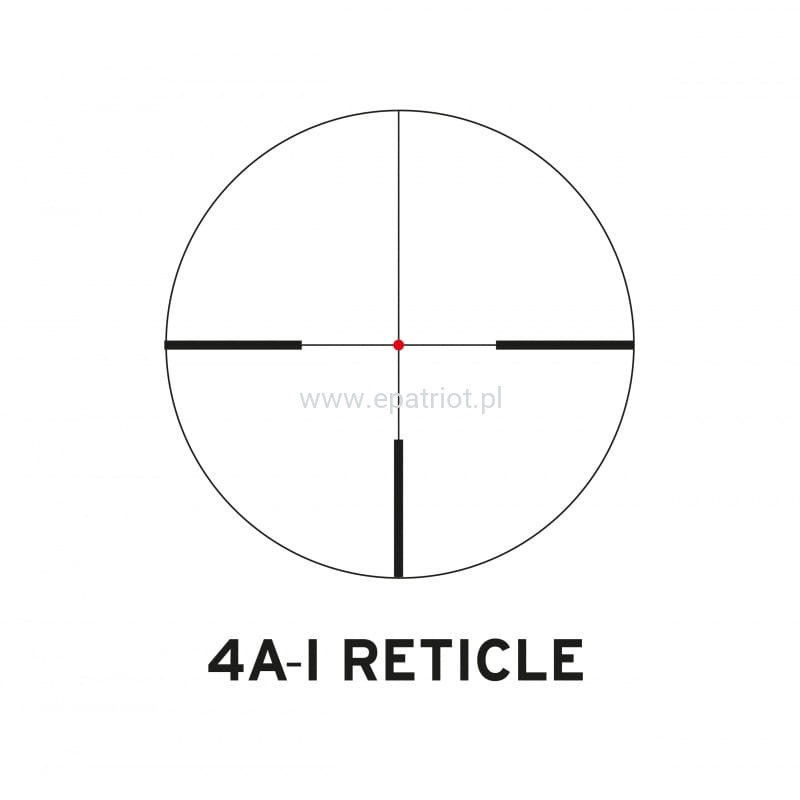 - KRZYŻ CELOWNICZY 4A-I RETICLE z podświetleniem red dot posiada 3 pogrubione ramiona krzyża celowniczego, które pomagają w szybkim i niezakłóconym namierzeniu celu