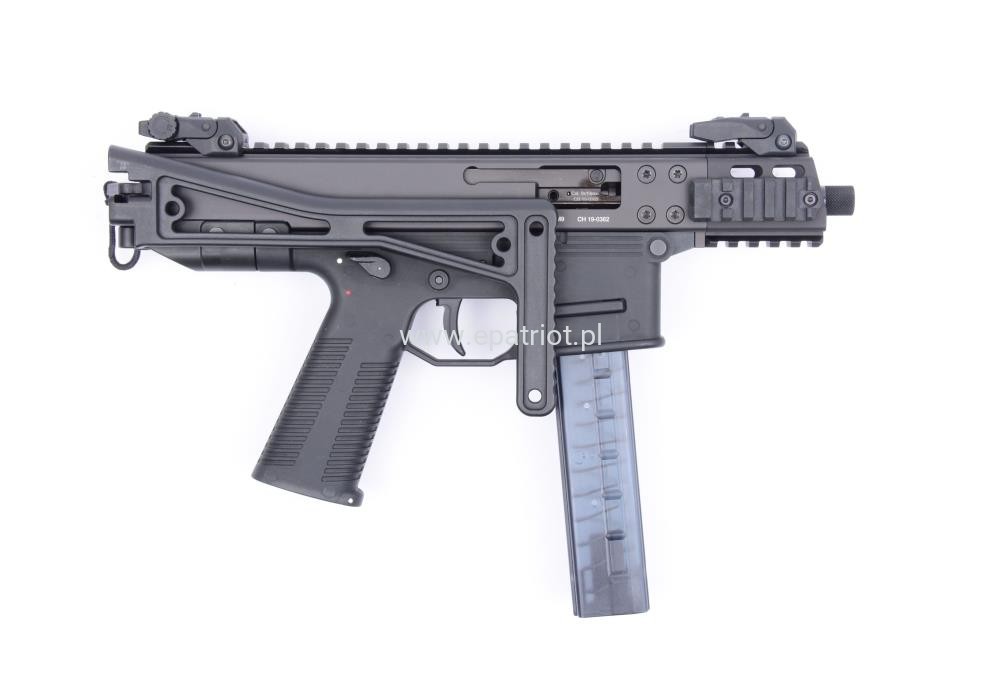 Pistolet został wyposażony w wykonaną z wytrzymałego polimeru składną na bok, szkieletową kolbę z profilowaną stopką zapewniajacą dobre oparcie broni o ramię.