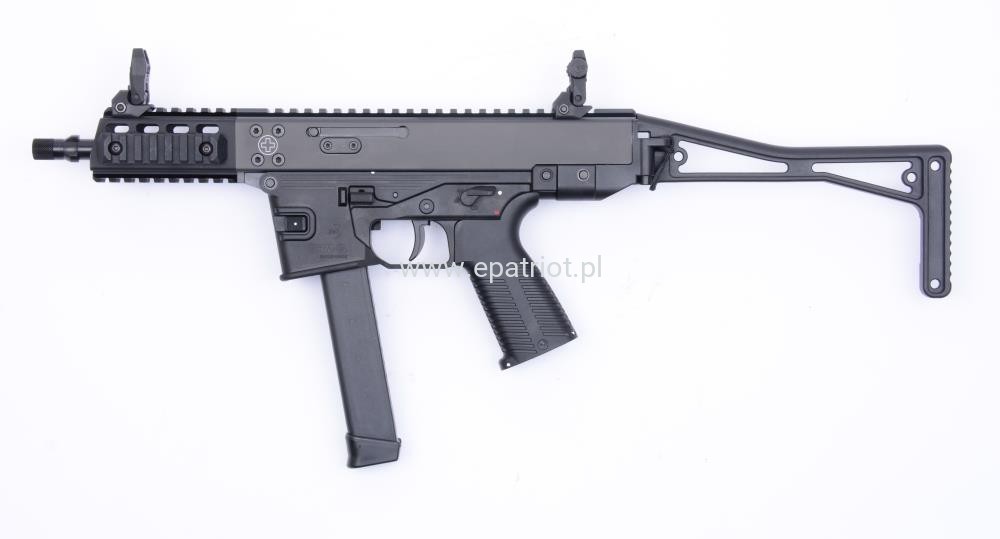 Pistolet został wyposażony w wykonaną z wytrzymałego polimeru składną na bok, szkieletową kolbę z profilowaną stopką zapewniajacą dobre oparcie broni o ramię.