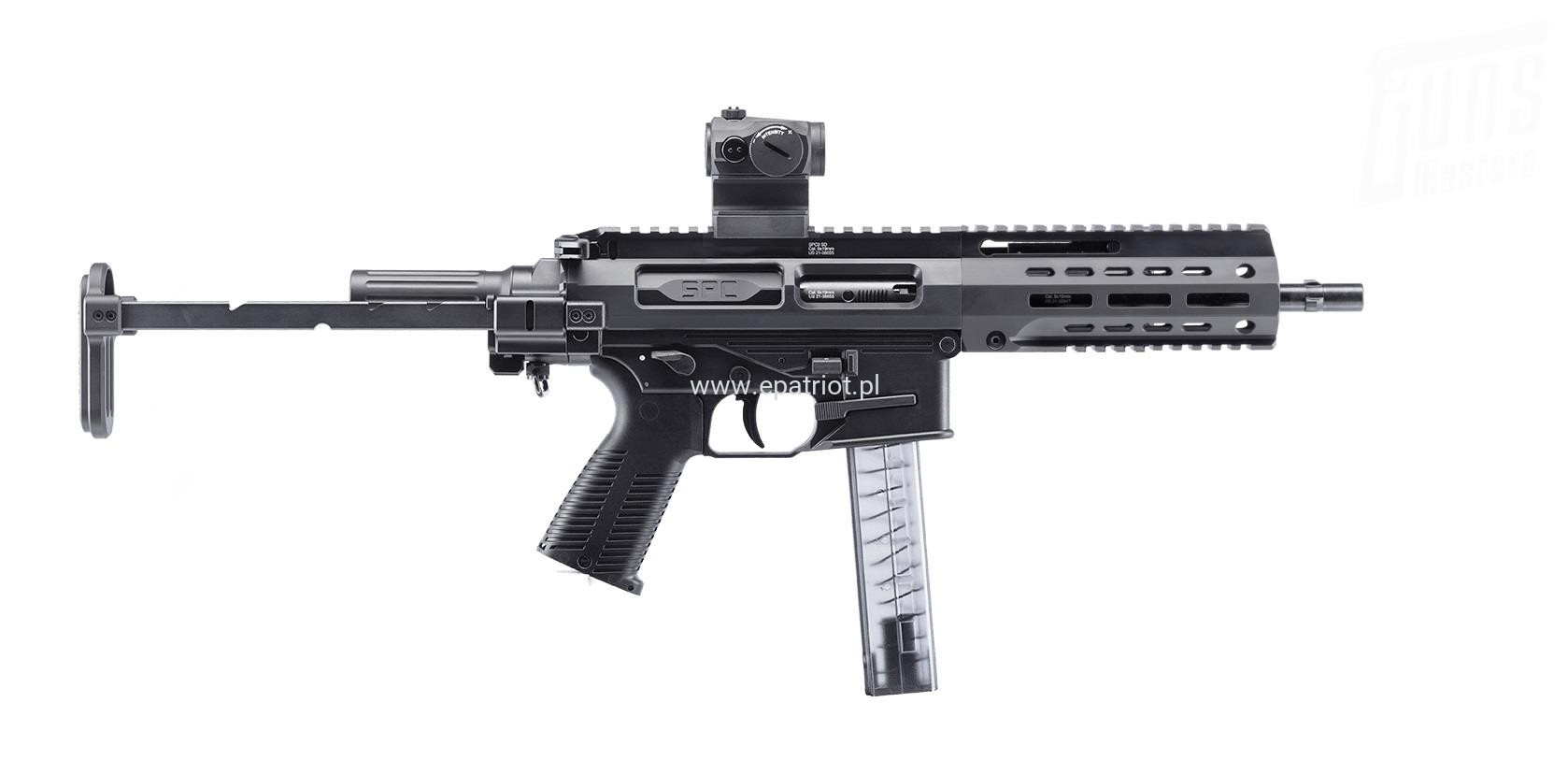 Pistolet B&T SPC9 9" 9x19 z kolbą teleskopową łączy ze sobą cechy APC9, MP5 oraz platformy AR. Takie połączenie zapewnia znakomitą obsługę, celność, bezpieczeństwo oraz nie wielki odrzut dzieki zastosowaniu innowacyjnego hydraulicznego buffer-a.