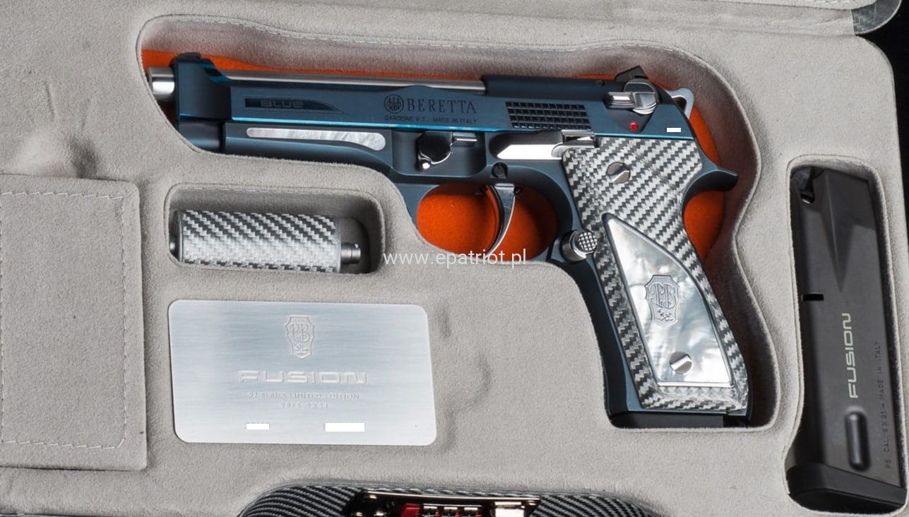 Beretta 92 FUSION BLUE edycja limitowana zainspirowana legendarnym modelem 92FS która łączy najnowocześniejszą technologię z włoskim stylem. I oto powstał pistolet idealny, klasyczny, solidny i designerski. Dopracowany w każdym detalu i wyprodukowany w ilości 100 sztuk. 60 sztuk w kalibrze 9x19mm i 40 sztuk w kalibrze 9x21mm.