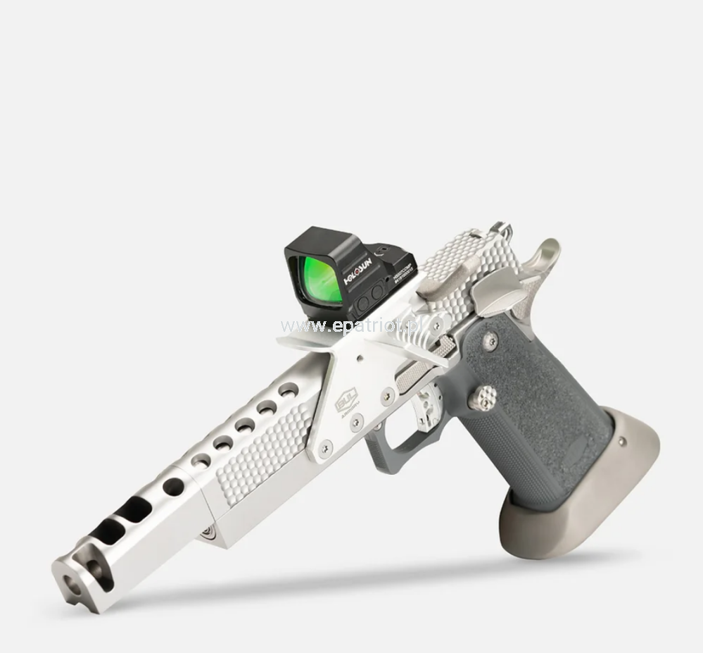 Pistolet ma unikalną na skalę światową jednoczęściową hybrydową lufę 5,7" z kompensatorem, która zwiększa wagę, zapewniając maksymalną stabilność podczas strzelania.
