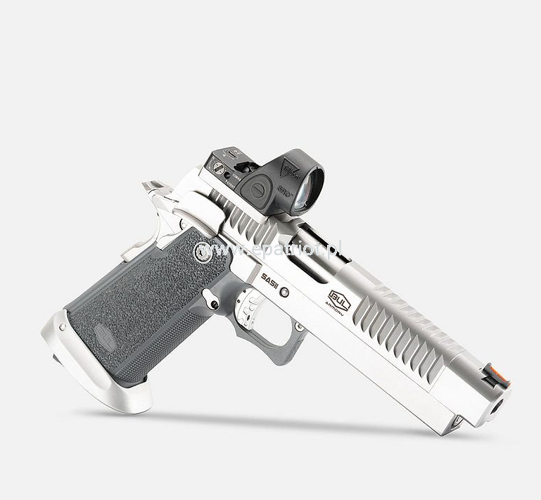 Pistolet Bul Armory SAS II Radical 5.4 kal. 9x19 - linia SAS II to najnowsze wyczynowe pistolety, opracowane na podstawie wieloletnich doświadczeń światowej klasy zawodników IPSC z TEAM BUL, produkowane pod marką BUL LTD. Wszystkie modele SAS są standardowo wyposażone w takie elementy jak żerdź o pełnej długości, obniżony i spłaszczony zrzut magazynka, kurek "match grade" i wiele innych dodatków w zależności od modelu. Polimerowe okładziny zostały przeprojektowany tak, aby pistolet zapewniał pewny i komfortowy chwyt.