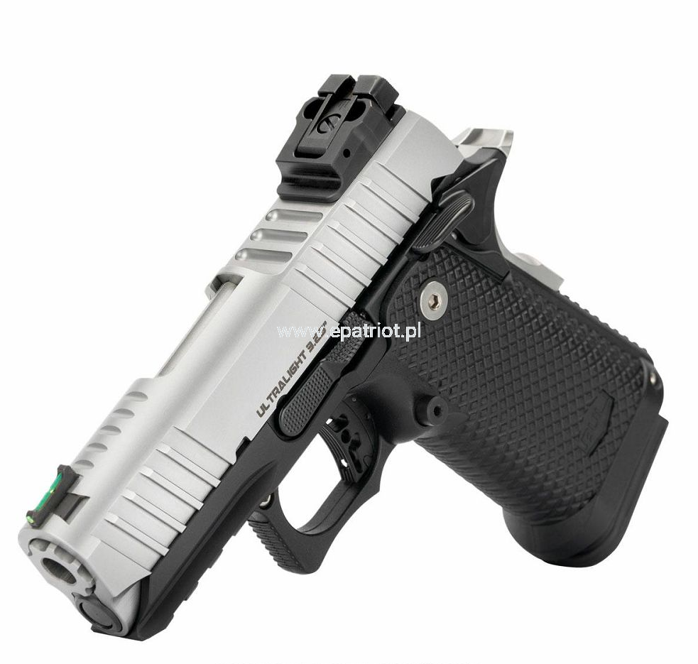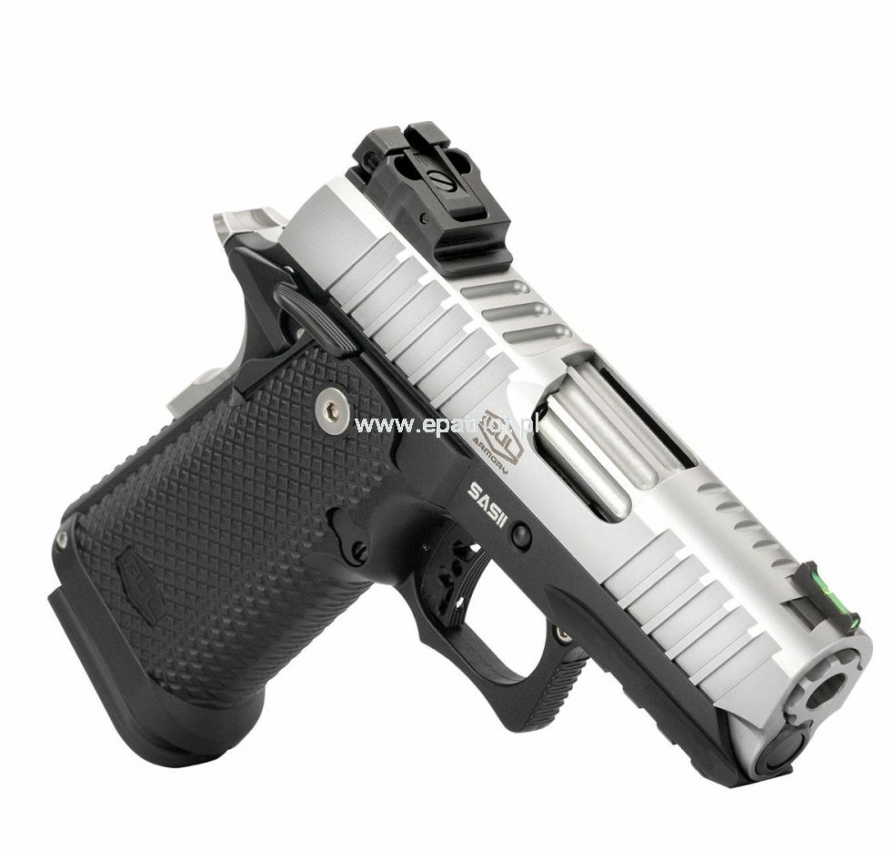 Pistolet Bul Armory SAS II ULTRA LIGHT kal. 9x19mm / kolor two tone - linia SAS II to najnowsze wyczynowe pistolety, opracowane na podstawie wieloletnich doświadczeń światowej klasy zawodników IPSC z TEAM BUL, produkowane pod marką BUL LTD. Wszystkie modele SAS są standardowo wyposażone w takie elementy jak żerdź o pełnej długości, obniżony i spłaszczony zrzut magazynka, kurek "match grade" i wiele innych dodatków w zależności od modelu. Polimerowe okładziny zostały przeprojektowany tak, aby pistolet zapewniał pewny i komfortowy chwyt. W połączeniu z agresywnymi nacięciami na zamku, pistolet zapewnia doskonałą ergonomie przy strzelaniu dynamicznym.