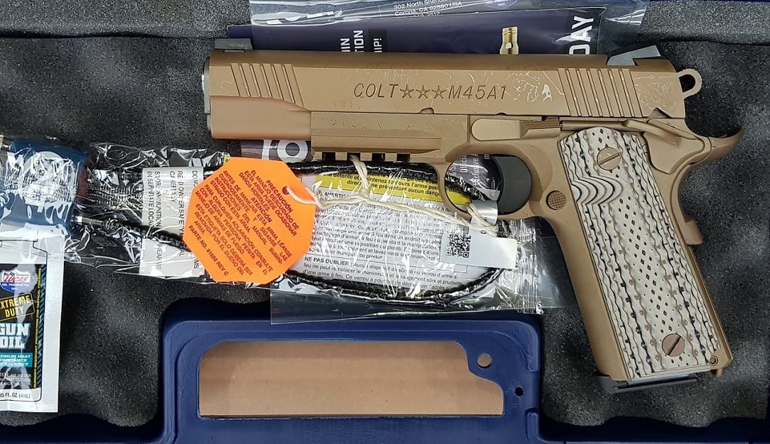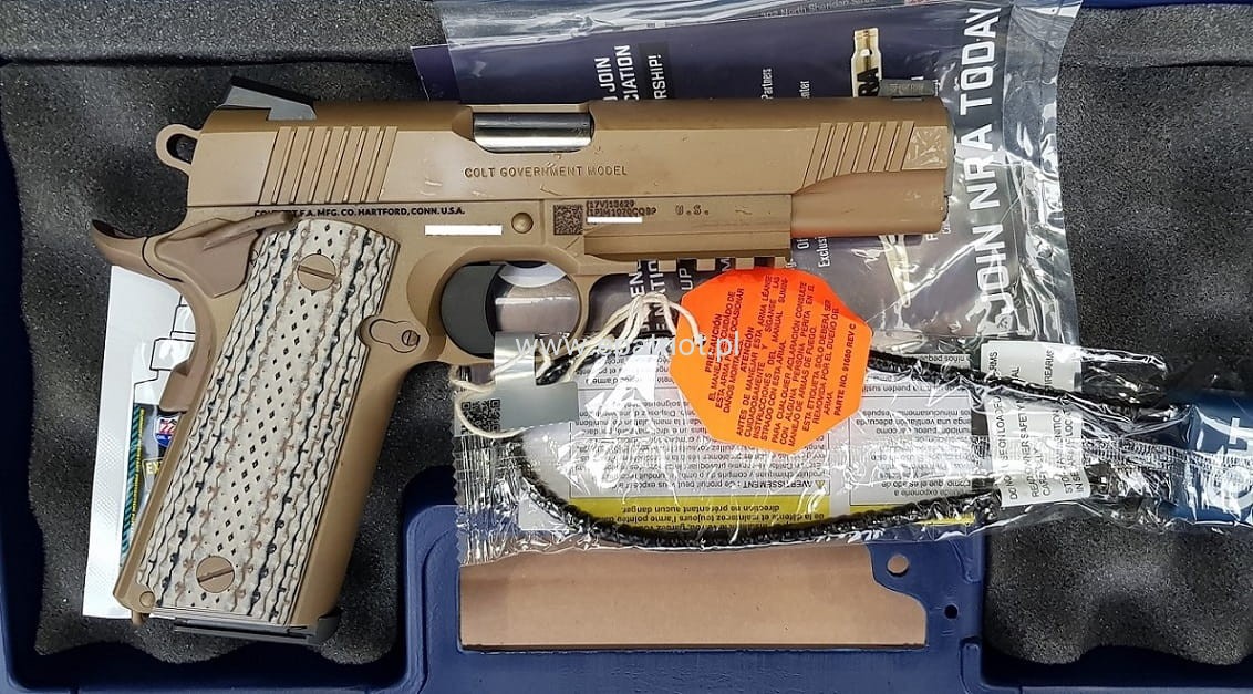 Pistolet COLT M45A1 Marine kal. 45ACP po rygorystycznym procesie selekcji, Korpus Piechoty Morskiej Stanów Zjednoczonych wybrał tą broń jako swój pistolet bojowy (CQBP). M45A1 ma trwałą brązową powłokę Decobond ™ i szynę Picatinny w specyfikacji M1913 do mocowania latarek, laserów i innych akcesoriów. Podwójny system sprężyn powoduje zmniejszenie odrzutu, jednocześnie wydłużając ich żywotność. Oryginalne trójpunktowe nocne przyrządy celownicze zapewniają szybkie złożenie do strzału.