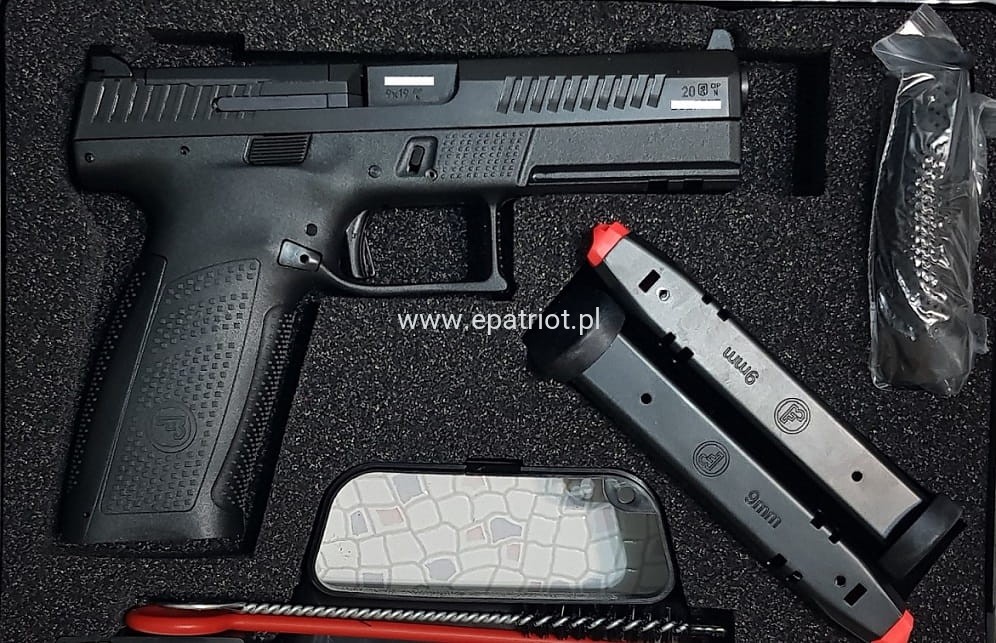 Pistolet CZ P-10 F OR kal. 9x19mm to pełnowymiarowa konstrukcja strzelecka, w której zastosowano wydłużony chwyt mieszący 19-nabojowy magazynek oraz lufę o standardowej długości. W zestawie z pistoletem znajdują się trzy wymienne nakładki chwytu pozwalające na dopasowanie go do predyspozycji strzelca.