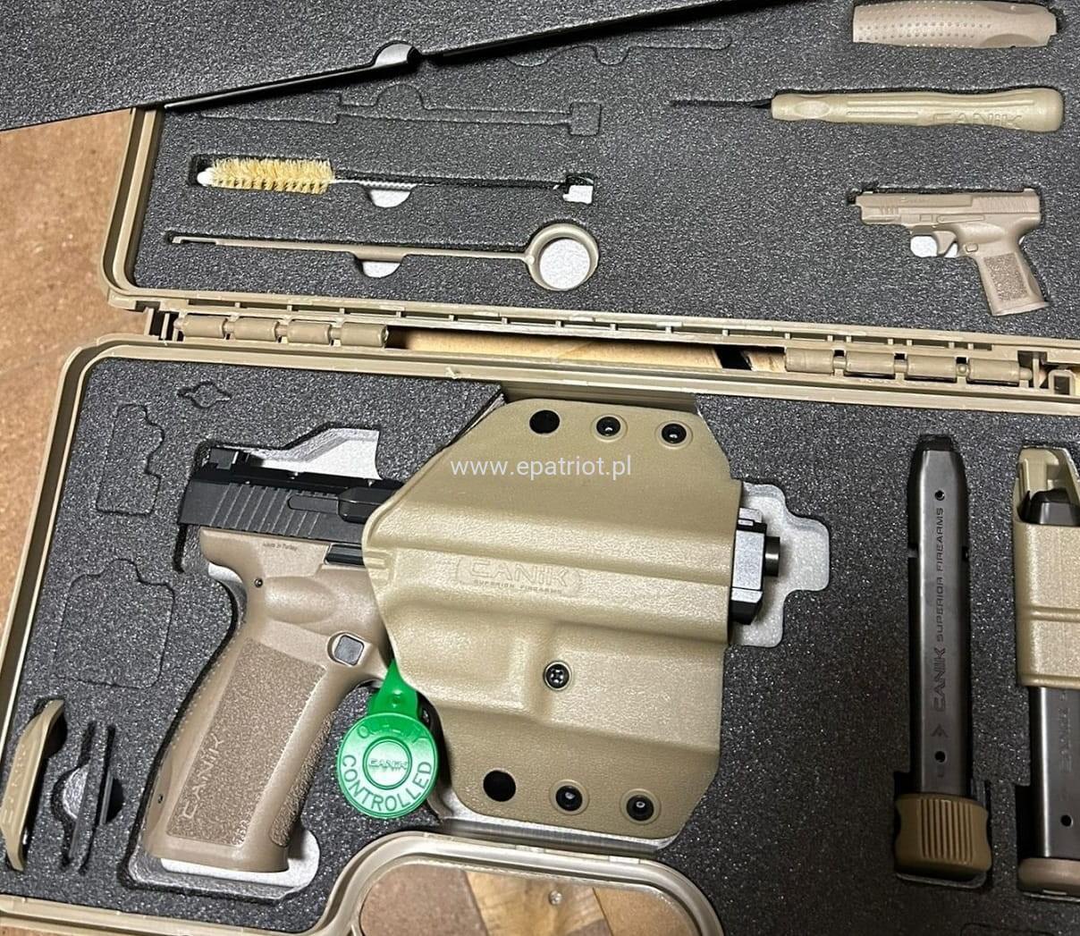 Pistolet Canik METE SFx FDE kal. 9x19mm posiada wcięcie pod kolimator, wskaźnik napięcia iglicy, wymienne okładziny chwytu oraz szynę picatinny do montażu ulubionych akcesoriów.