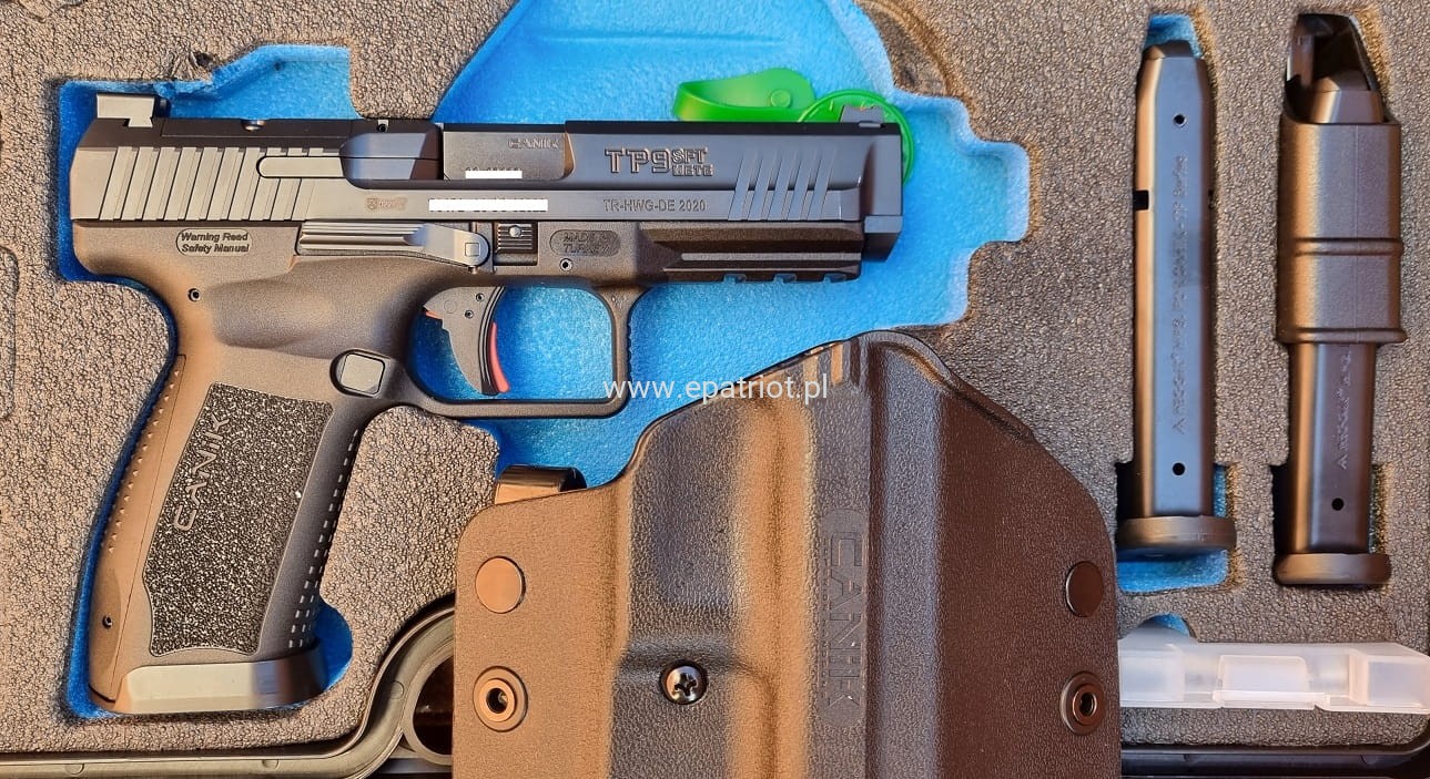 Pistolet Canik TP9 SFT METE kal. 9x19mm w zestawie pistolet, kuferek, okładziny chwytu, 3 magazynki 18-to nabojowe, przybory do czyszczenia, kabura.