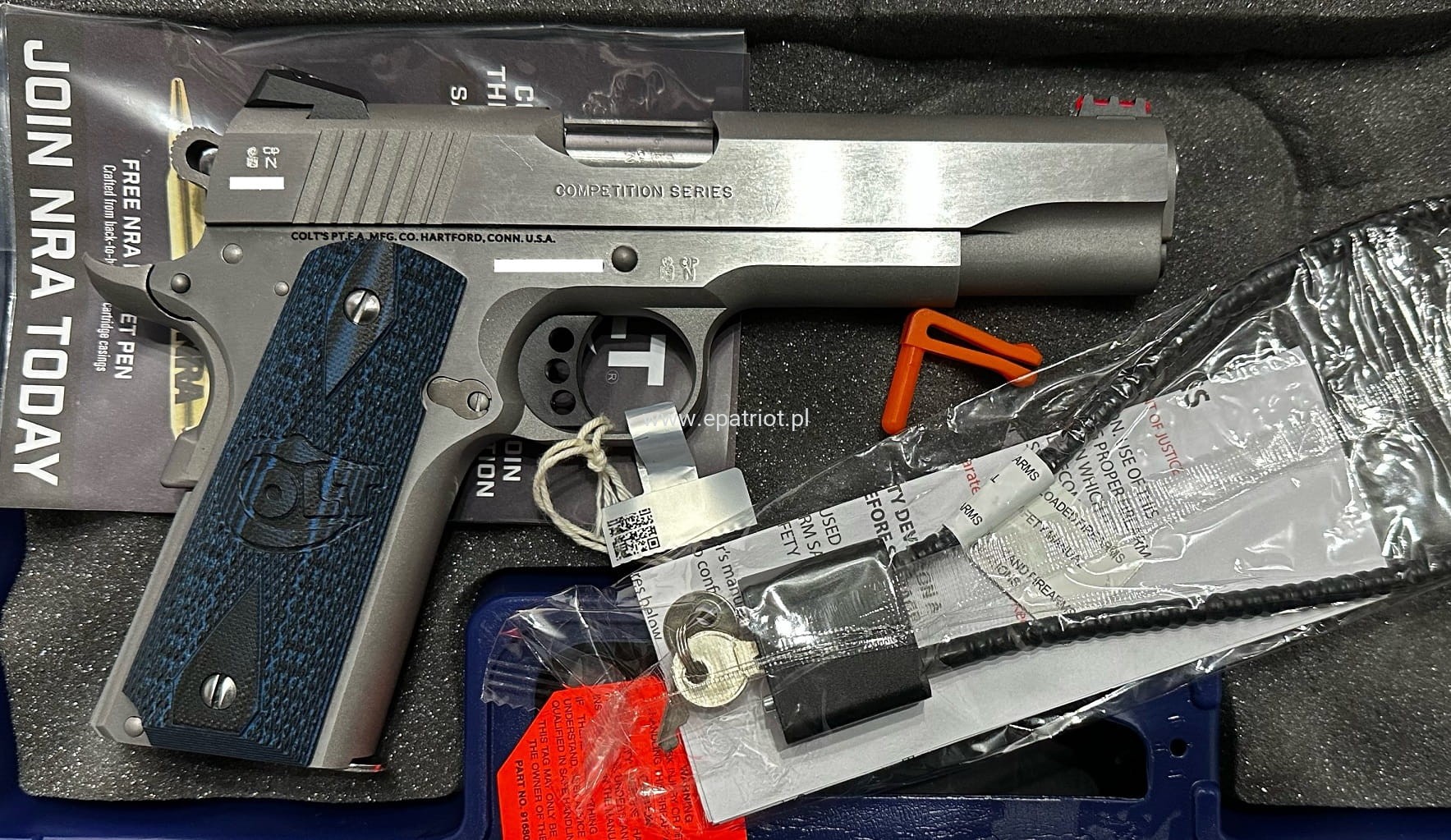 Pistolet Colt Government – Competition .45ACP wykonany z odpornej na korozję stali nierdzewnej. Zmodyfikowany G10 Grip oraz zabezpieczenia: Upswept Beavertail Grip Safety i Undercut Trigger Guard utrzymują pistolet w dłoni zapewniając jednocześnie lepszą kontrolę. System sprężyn Dual Recoil zmniejsza odrzut odczuwalny przy wydłużonej żywotności sprężyny powrotnej. Zastosowany Series 70 Firing System zapewnia czyste, ostre naciśnięcie spustu. National Match® Barrel i regulowane przyrządy celownicze Novak zwiększają precyzję.