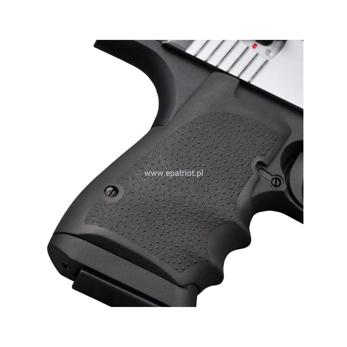 Chwyt jest anatomicznie ukształtowany i zapewnia idealny kąt ułożenia dłoni podczas strzelania oburęcznego, co pozwala na wygodne, szybkie i celne strzelanie.