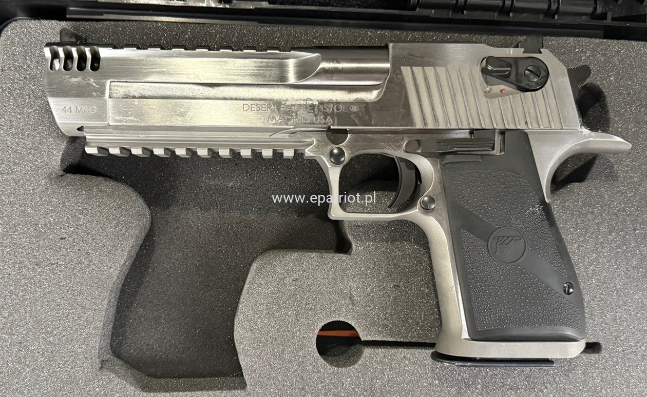 Pistolet Desert Eagle XIX 6'' Stainless Steel MBI .44Magnum DE44SRMB to słynny na całym świecie pistolet Desert Eagle wykonany ze stali nierdzewnej (Stainless MBI) zaprojektowany w 1979 roku przez amerykańska firmę Magnum Research, Inc.