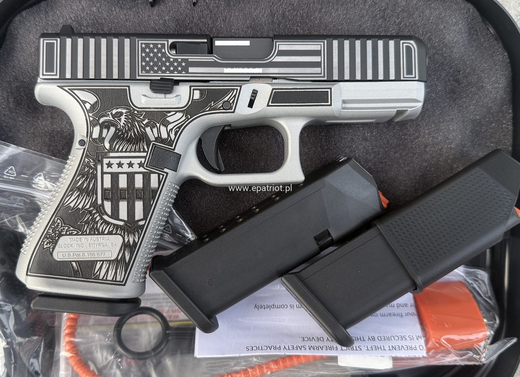 Pistolet GLOCK 19 GEN 5 Custom Trump Take America Back to limitowana wersja jednego z najbardziej rozpoznawalnych kompaktowych modeli znanego producenta. Przepięknie wykonana w unikatowym malowaniu i wykończeniu. To perełka dla kolekcjonerów oraz miłośników strzelectwa.