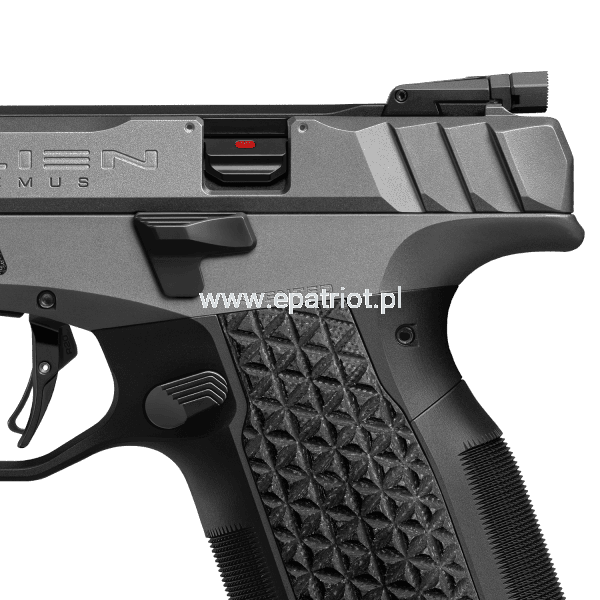 Alien Remus został zaprojektowany tak, aby doskonale leżał w dłoni i pozwalał na pełną kontrolę w każdych warunkach. Aluminiowa rama z wymiennymi panelami bocznymi i tylnymi nakładkami pozwala dostosować chwyt do indywidualnych preferencji użytkownika. Opcjonalny magwell ułatwia szybkie i pewne wymiany magazynków, a wysokiej jakości materiały gwarantują trwałość i niezawodność.