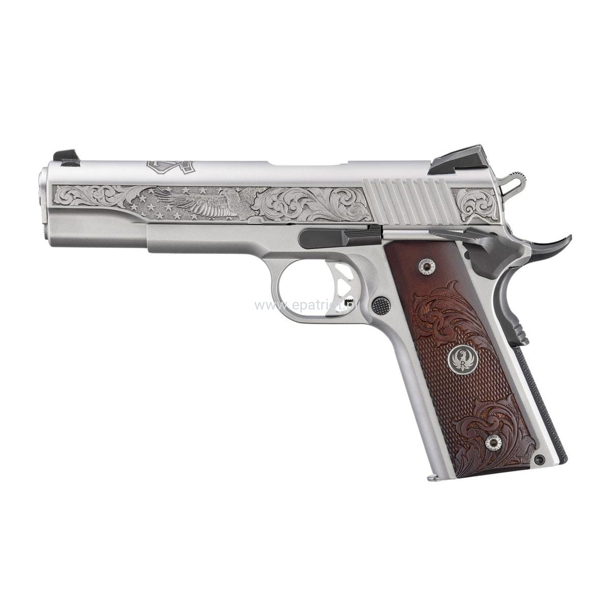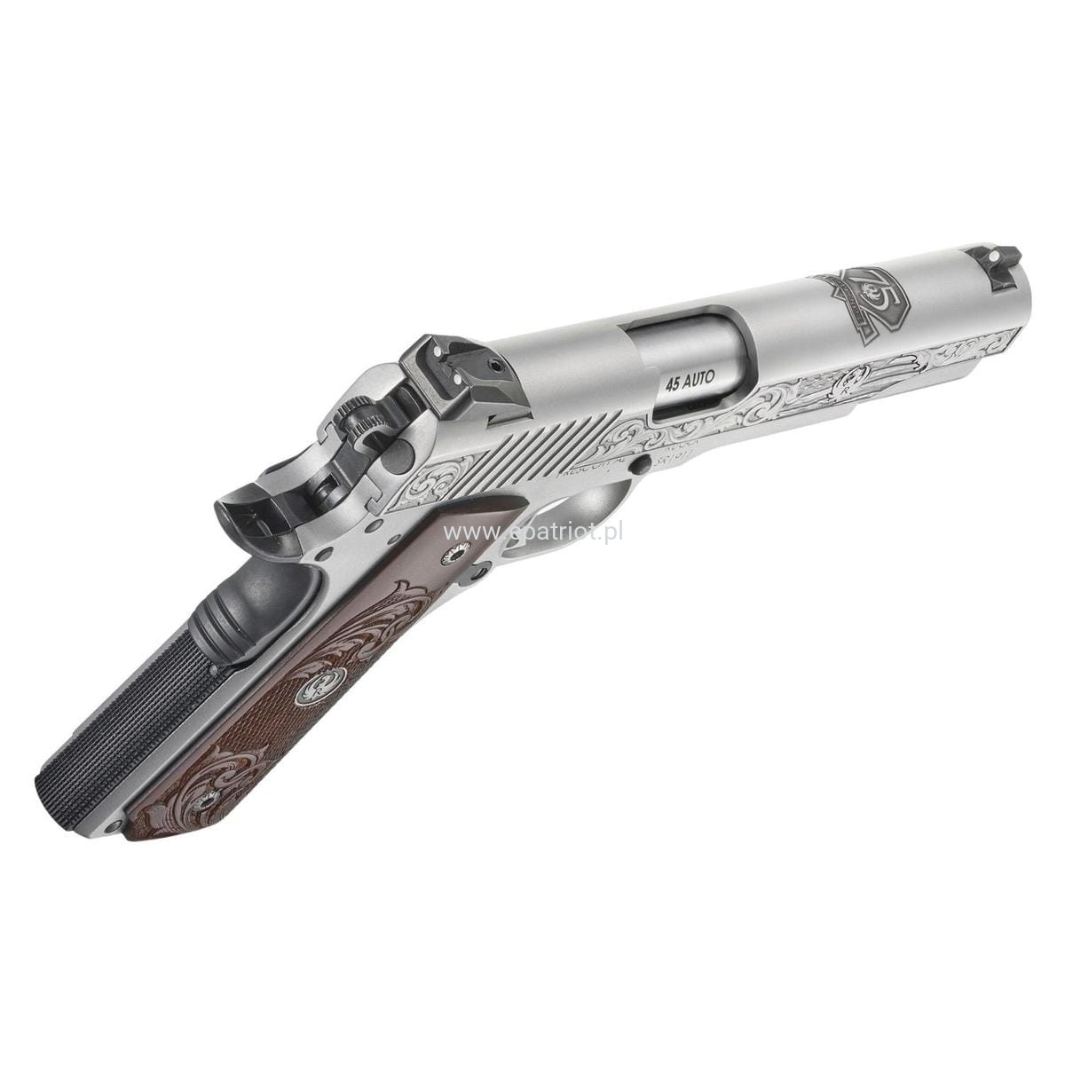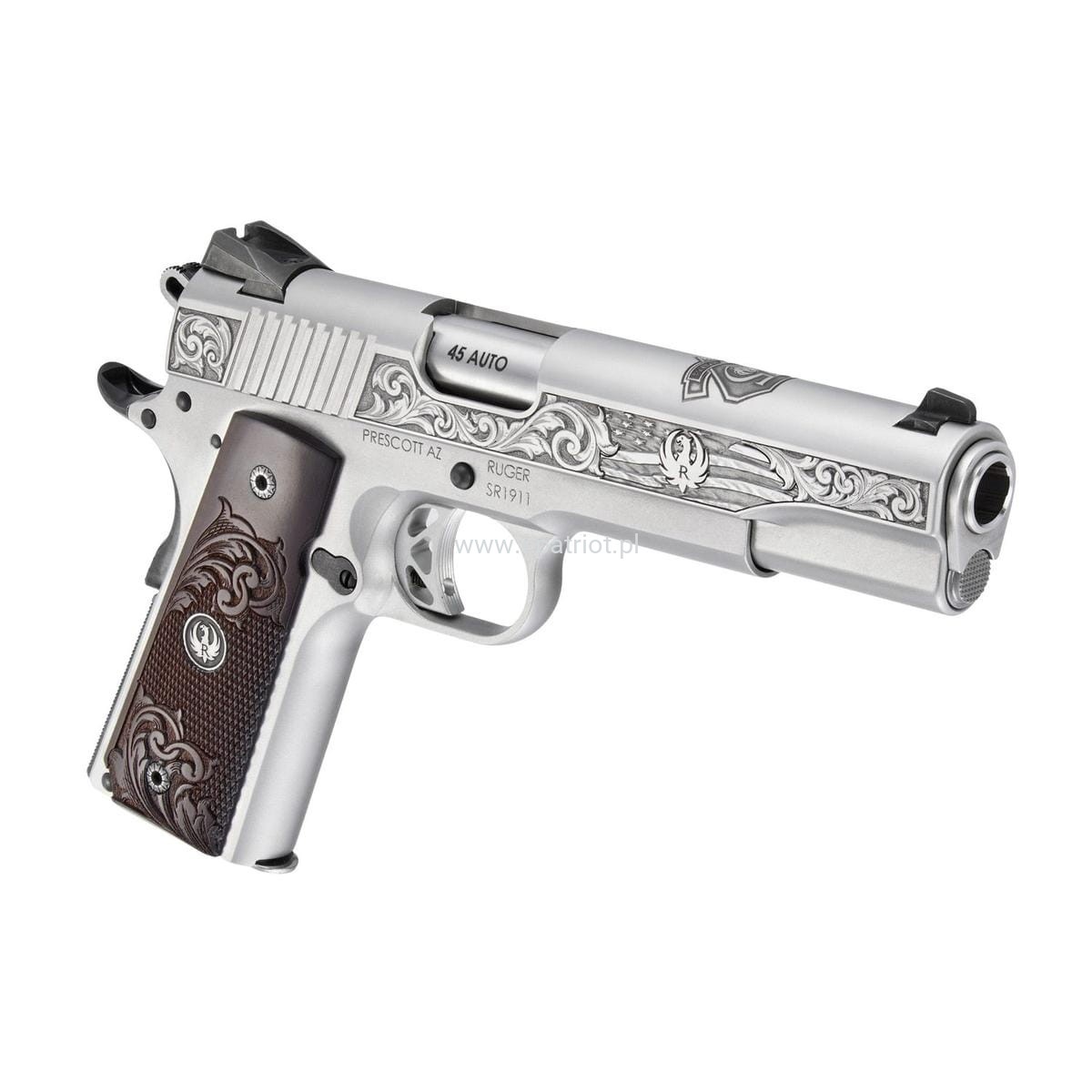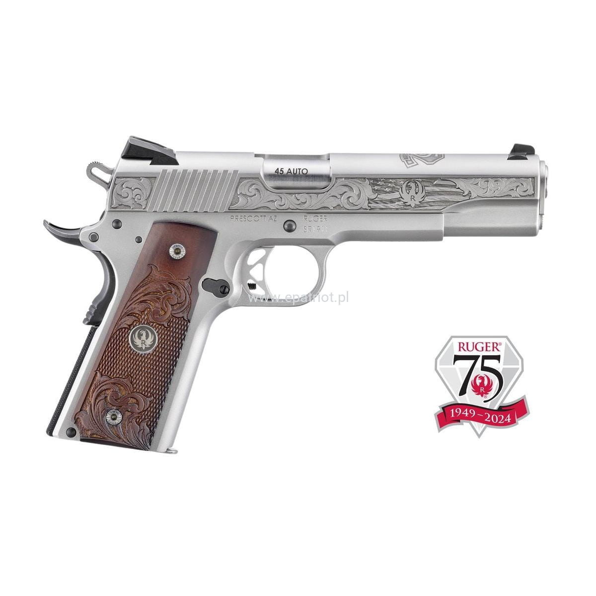 Pistolet Ruger SR1911 .45ACP 6765 to model z limitowanej edycji 75th Anniversary z początkiem numeru seryjnego „R75”. Zamk został ozdobiony laserowo grawerami. Również okładziny chwytu są wyjątkowe ponieważ zawierają podobne do zamka motywy