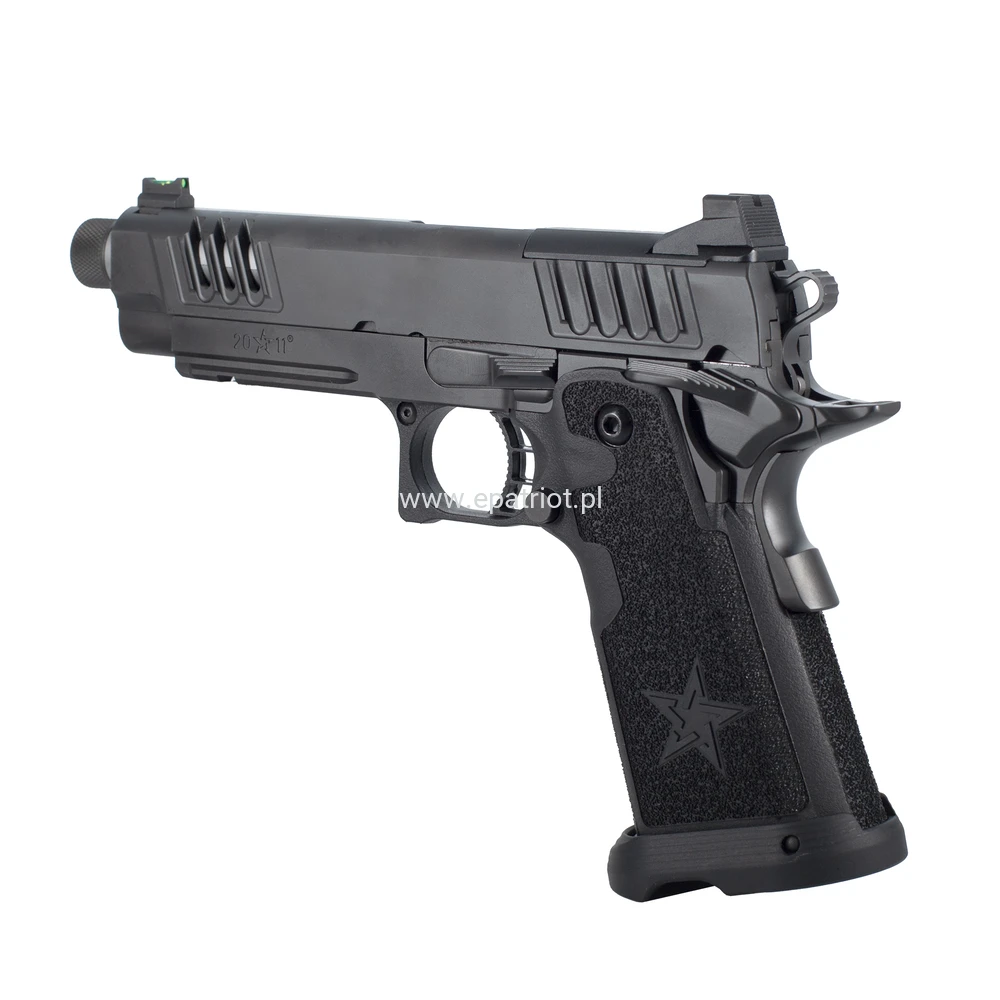 Pistolet STACCATO 2011 P OR k. 9x19mm (DLC DLC BULL TB) to pistolet z serii heavy duty dostosowany do pracy w najtrudniejszych warunkach, zachowując precyzyjną pracę mechanizmów charakterystyczną dla tej marki. Marka Staccato wymyśliła i opatentowała platformę 2011, która różni się przede wszystkim dwurzędowym magazynkiem od pierwowzoru jakim jest 1911. Warto zauważyć, że Staccato jako jedyna firma, ma prawo do używania nazwy 2011. W modelu P otrzymujemy dwa magazynki o pojemności 17 naboi.