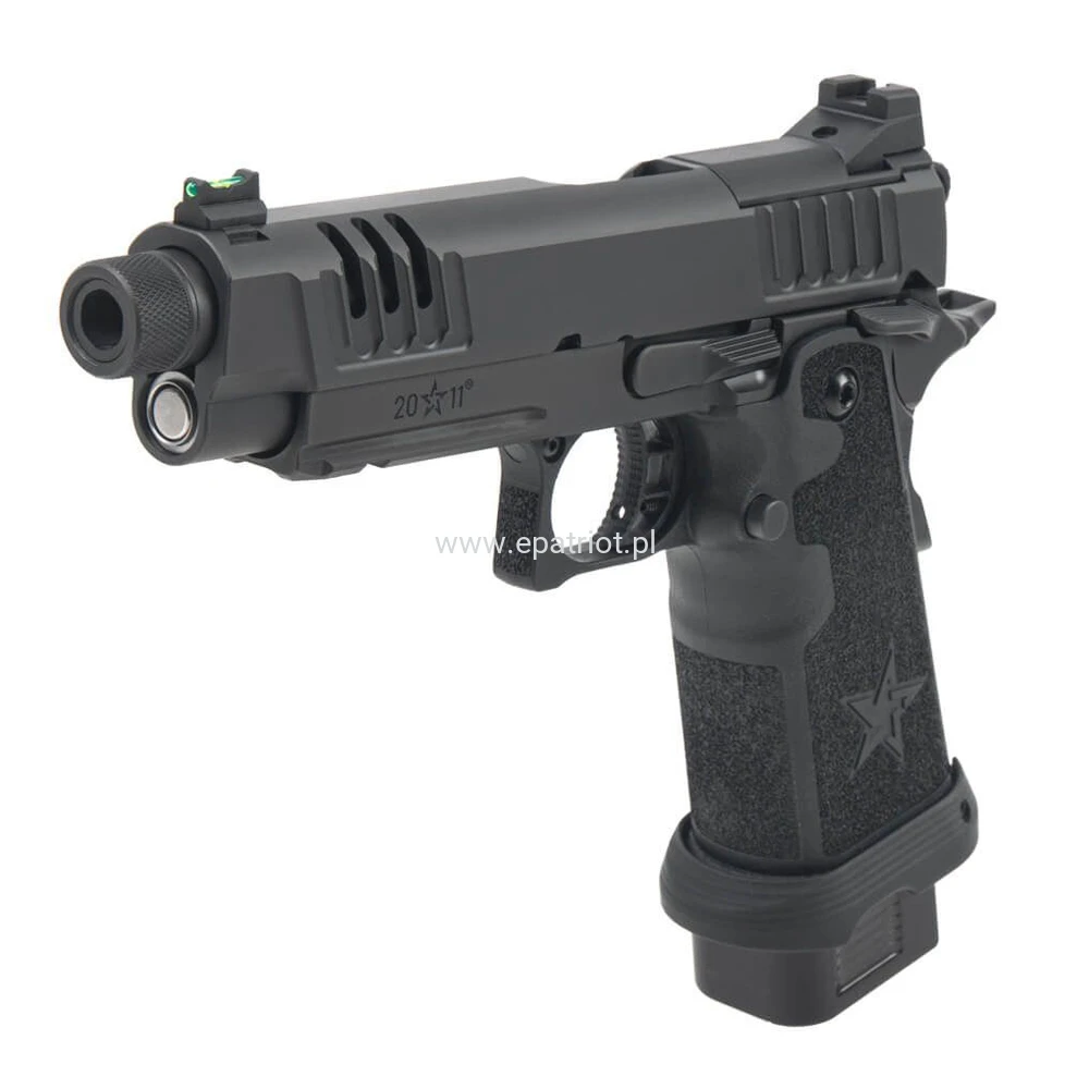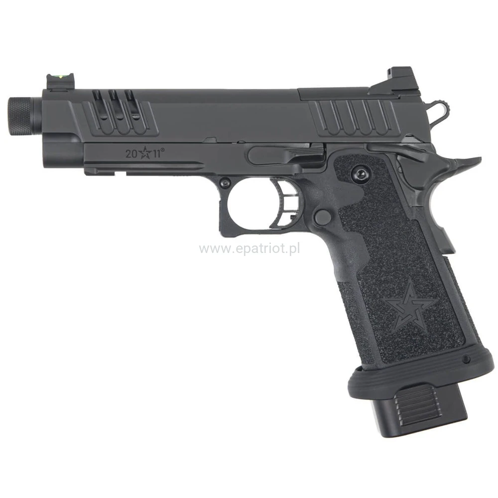 Pistolet STACCATO 2011 P OR k. 9x19mm (DLC TB/ X-series / alu) model P to pistolet z serii heavy duty dostosowany do pracy w najtrudniejszych warunkach, zachowując precyzyjną pracę mechanizmów charakterystyczną dla tej marki. Marka Staccato wymyśliła i opatentowała platformę 2011, która różni się przede wszystkim dwurzędowym magazynkiem od pierwowzoru jakim jest 1911. Warto zauważyć, że Staccato jako jedyna firma, ma prawo do używania nazwy 2011. W modelu P otrzymujemy dwa magazynki o pojemności 17 naboi.