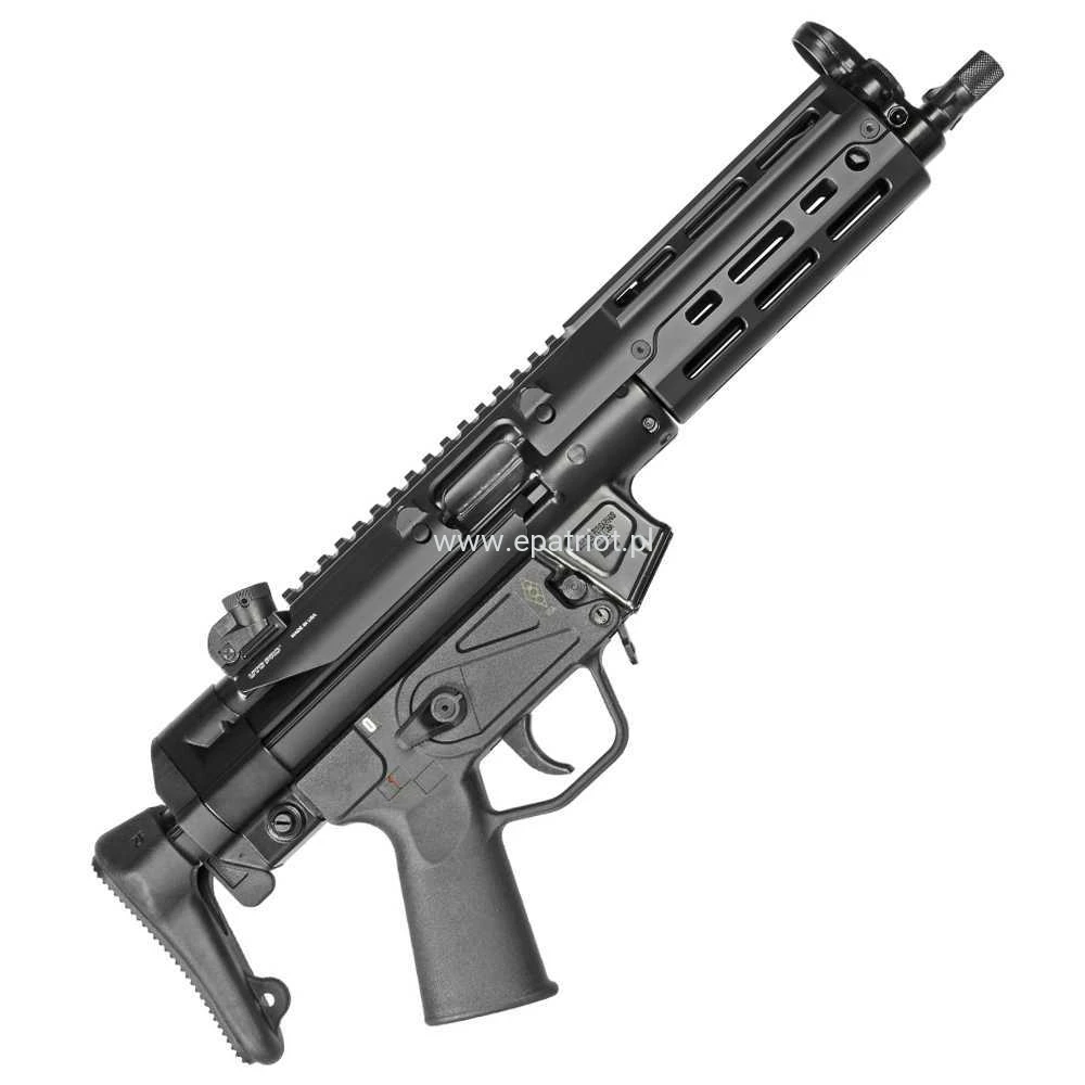 Pistolet ZF-5 C Essentials kal. 9x19mm jest prawdopodobnie najbogatszą i jednocześnie najciekawszą opcją standardu MP5. Praktycznie jest to wersja podstawowa z charakterystycznym bagnetowym zaczepem tłumika, ale firma dołożyła do niej zsuwaną kolbę PDW (Personal Defense Weapons), rozbudowaną osłonę komory zamkowej z szyną picatinny i łoże ze stopu aluminium z gniazdami M-Lok.